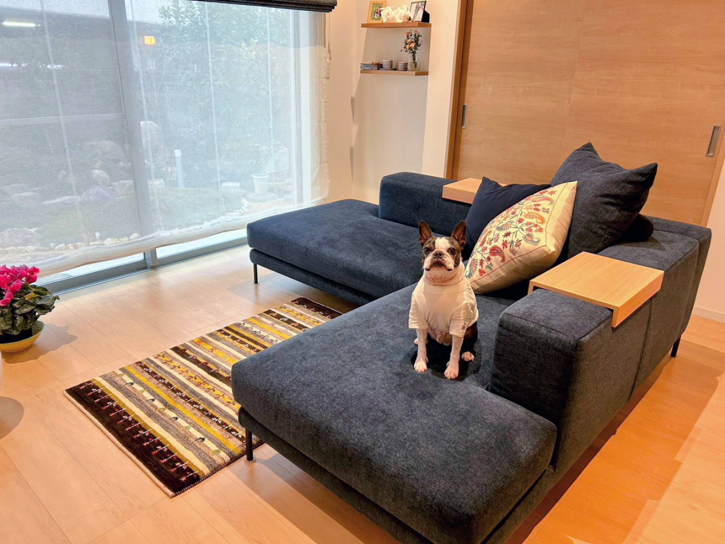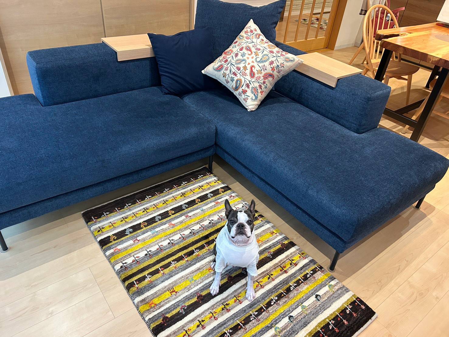 そのワンちゃんがこちら。なるほど~!合ってます(^^♪ソファやお部屋の雰囲気ともバッチリです。
