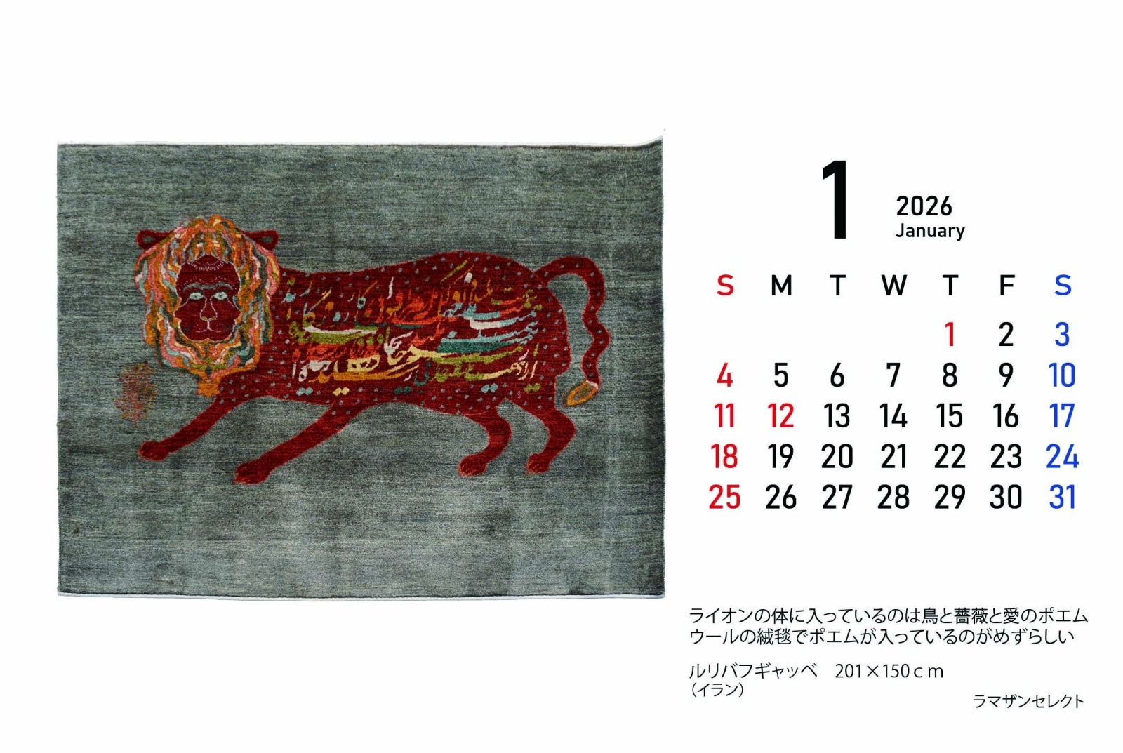 中はこんな感じ。abrajスタッフがそれぞれ選んだ絨毯の写真になっていて、毎月違う絨毯を楽しんでいただけます。 選んだ絨毯についてのコメントもあるのでそこもお楽しみポイント。