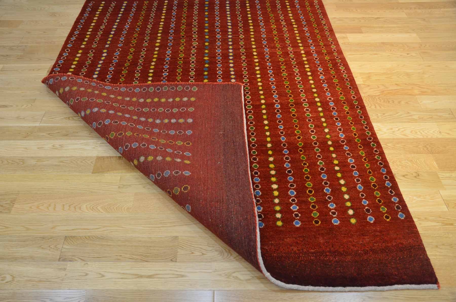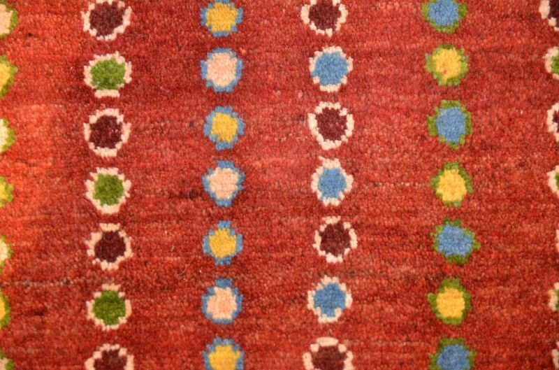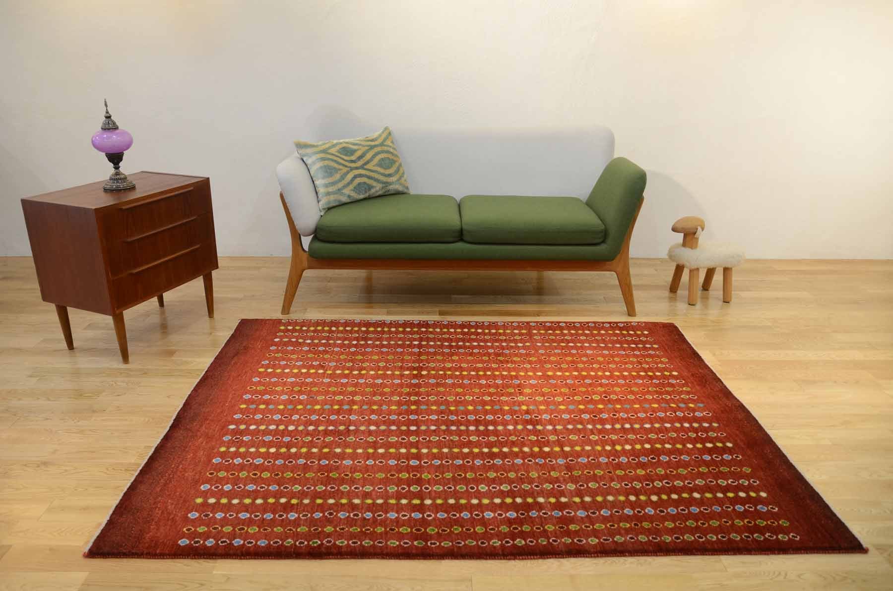 四角の中に長寿を願う生命の木の模様や幸せを呼び込む窓の模様など、たくさんの模様が入っている楽しいギャッベです。お部屋の雰囲気を変えたい時にお勧めの模様です。