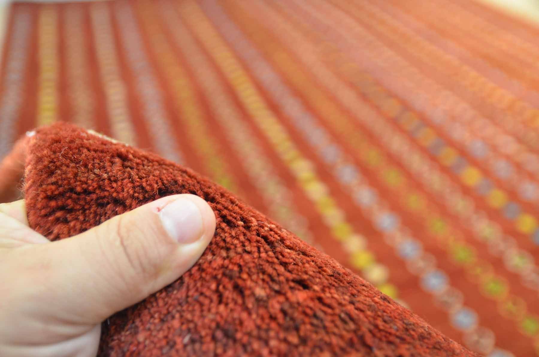 アメレは手紡ぎされたランクの高い糸を使っています。結びが細かく整った模様が魅力です。ウールの柔らかさにこだわっておりカシュクリよりも毛足が長い目でフカフカしています。