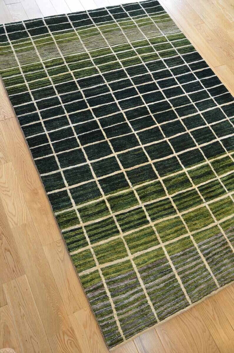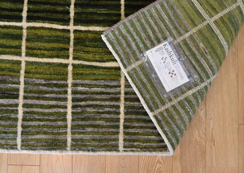 カシュクリは冬を越した羊の毛を使い手紡ぎされたランクの高い糸を使っています。肌触りも柔らかく光沢があるのが特徴です。結びが細かく整った模様が魅力です。毛足は短い目でスッキリした印象。