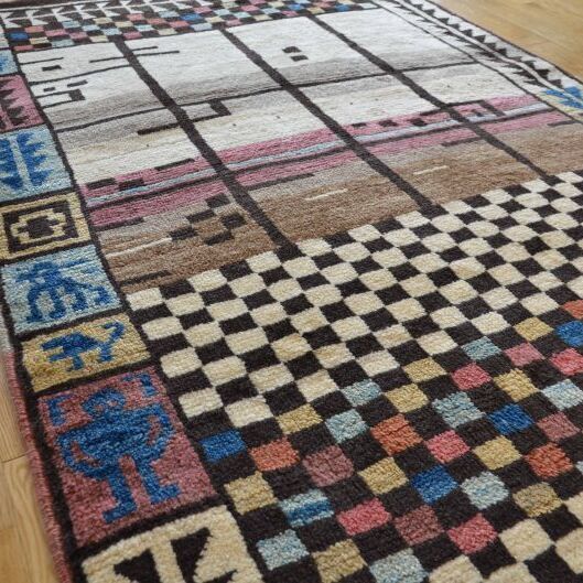 ビレッジ ギャッベはイランの遊牧民が普段使いにしていた個性あふれるギャッベ。 アンティークだと100年以上前に作られたものになるので、今ではほとんど手に入りません。そんなビレッジギャッベをアブラッシュオリジナルで作りました。