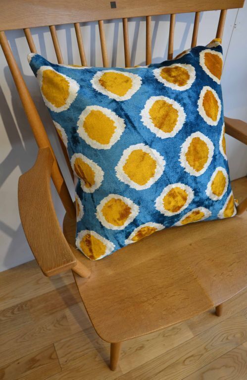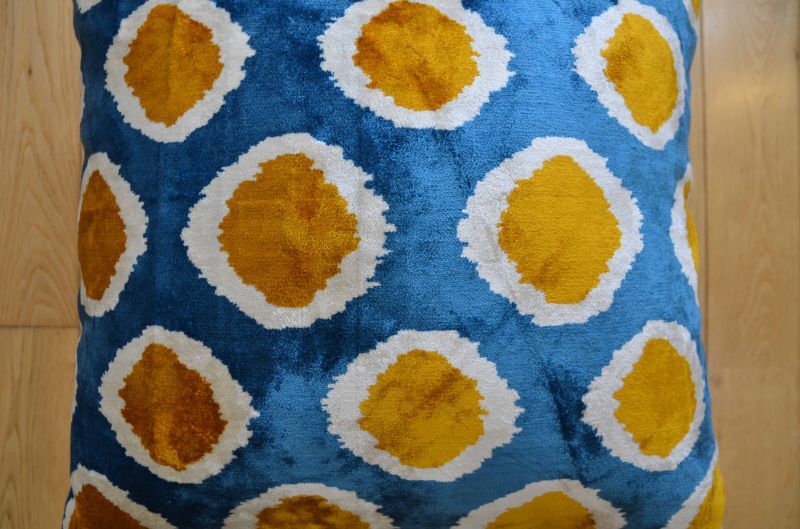 伝統の模様を使ったクッションカバー。表はシルクのベルベット生地。肌触りが柔らかいので、背もたれにしていただいても気持ち良くお使いいただけます。