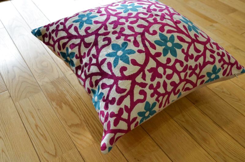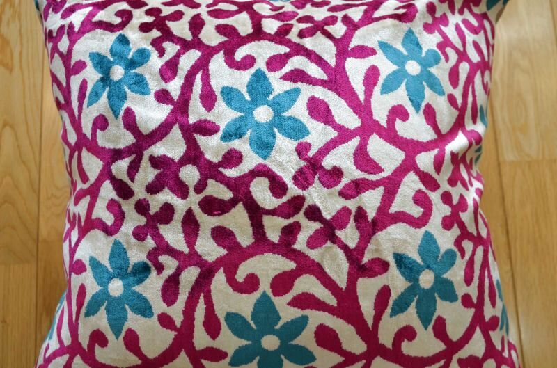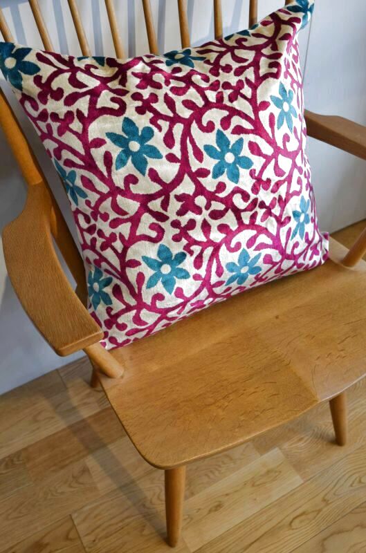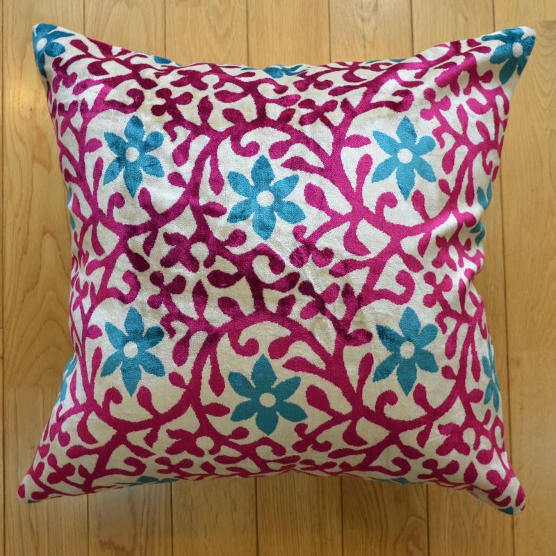 伝統の模様を使ったクッションカバー。表はシルクのベルベット生地。肌触りが柔らかいので、背もたれにしていただいても気持ち良くお使いいただけます。