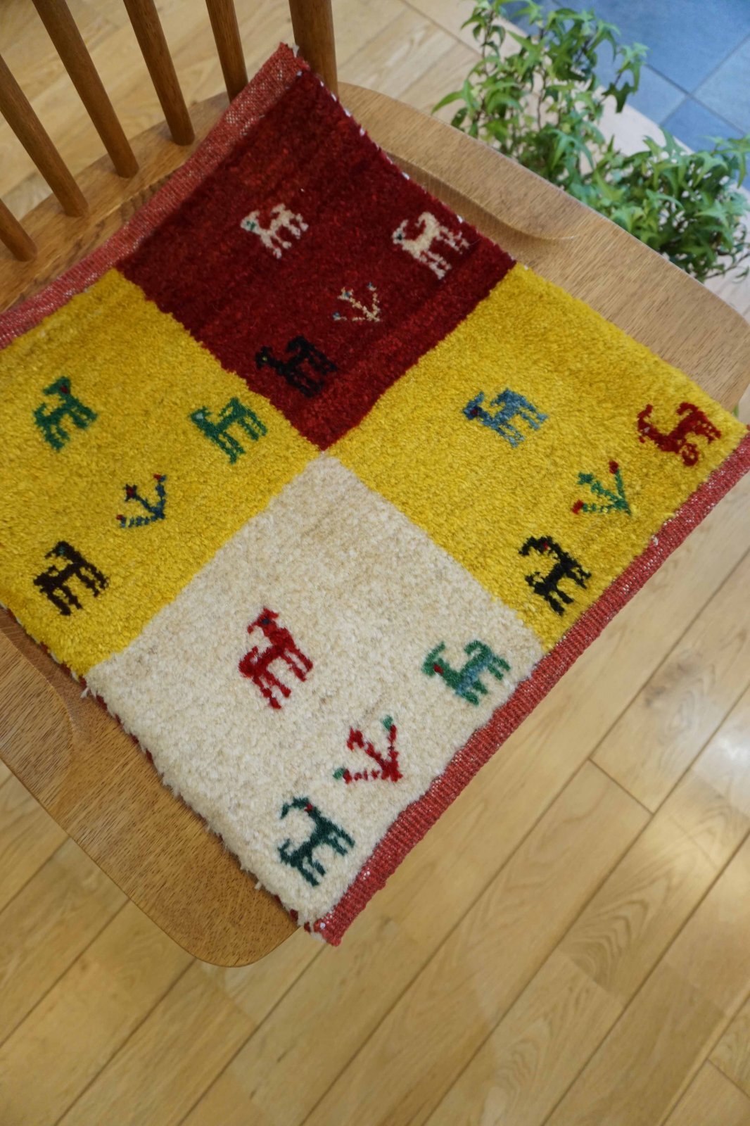 ワンランク上の上質の毛を使ったカシュクリタイプのギャッベです。肌触りがいいので食後の会話も弾んで離れたくなくなるかも♪ダイニングチェアやベンチ、車のシートやキャンプにもにおすすめです。