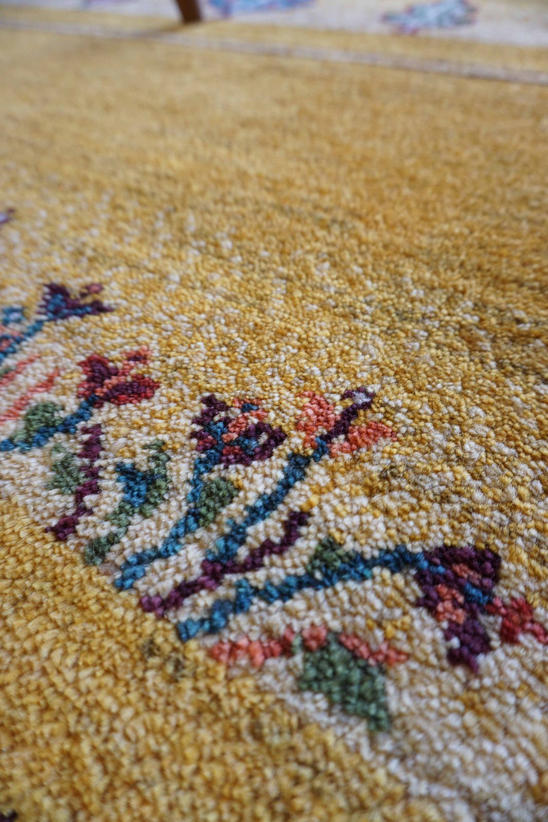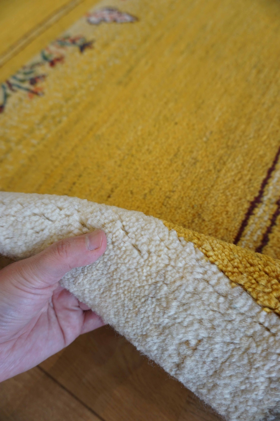 アメレは手紡ぎされたランクの高い糸を使っています。結びが細かく整った模様が魅力です。ウールの柔らかさにこだわっておりカシュクリよりも毛足が長めでフカフカしています。