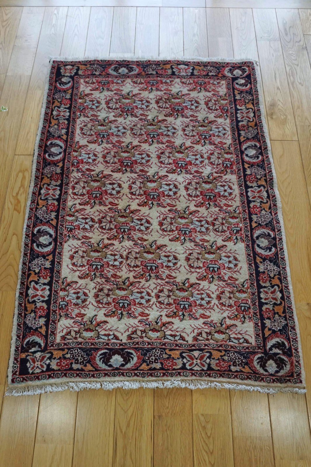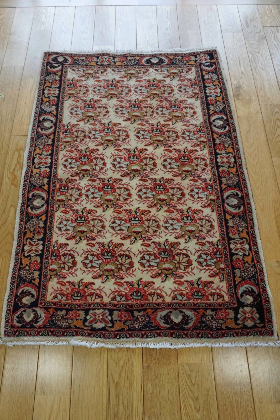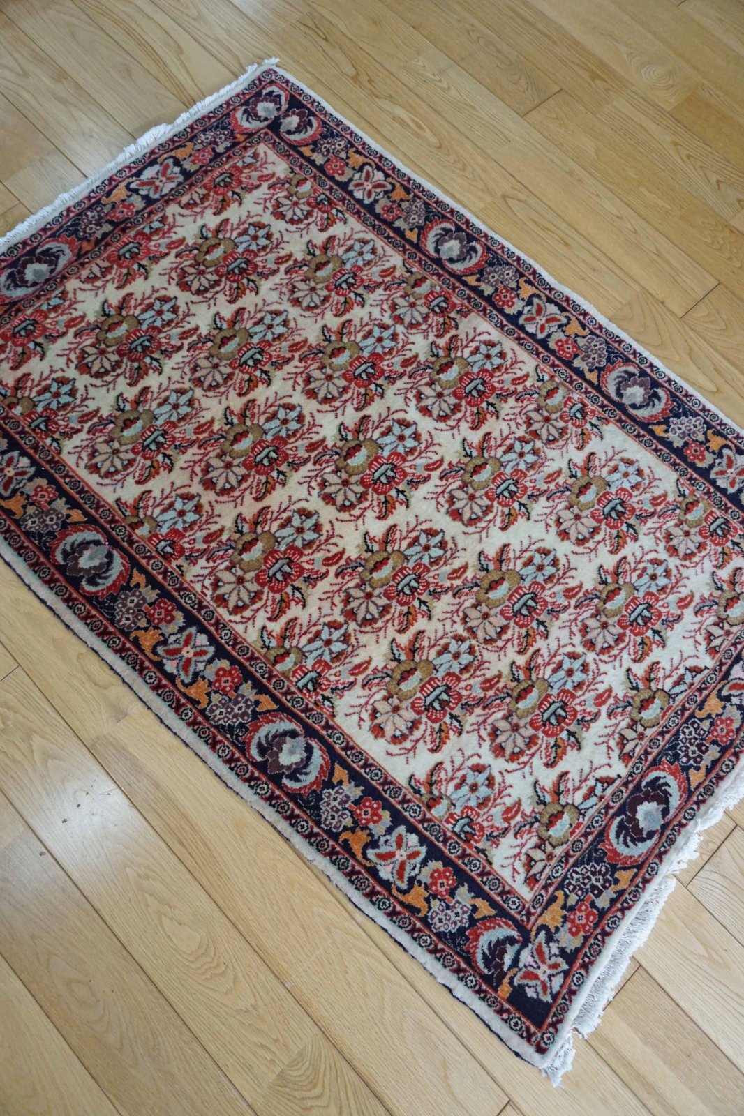 ビジャルはイランにある町の名前。結びが細かく丈夫なことで有名な絨毯です。田舎で作られたペルシャ絨毯なので不規則な模様の面白さがあります。