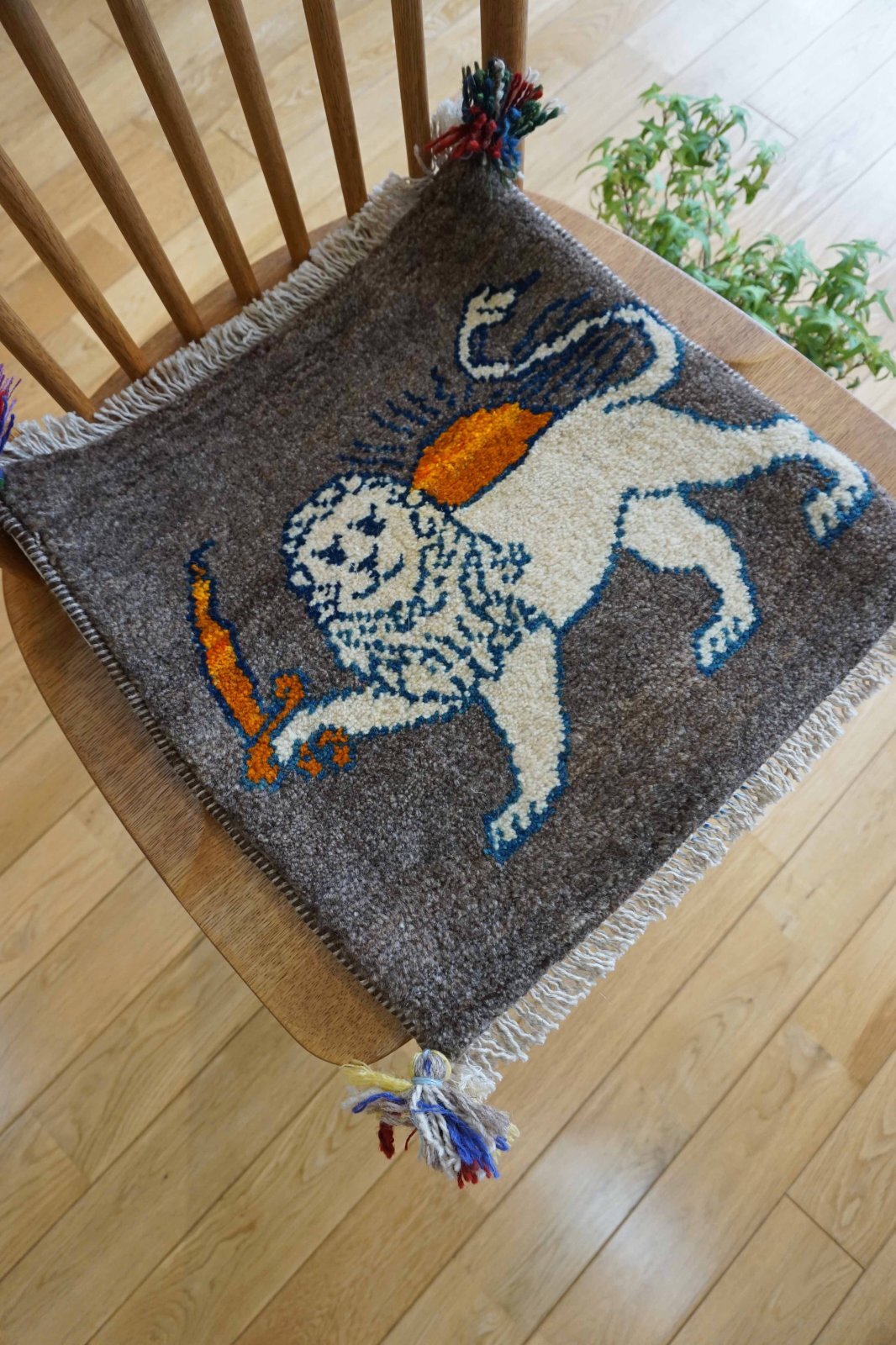 ダイニングチェアやベンチにちょうどいいギャッベ座布団サイズ。夏もサラッとして暑くなく、一年中敷いていただけます。車のシートやキャンプのチェアにもおすすめ。