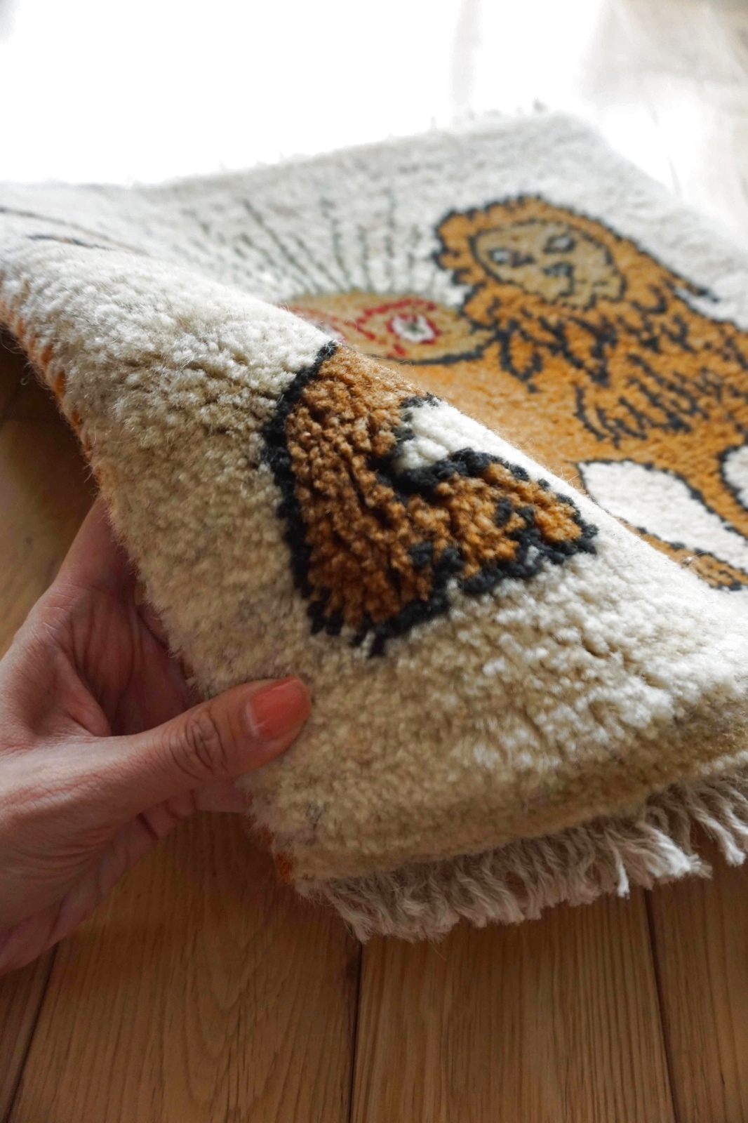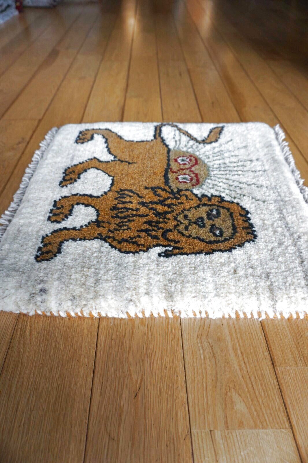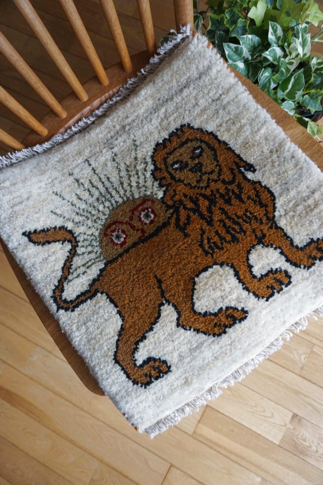 ダイニングチェアやベンチにちょうどいいギャッベ座布団サイズ。夏もサラッとして暑くなく、一年中敷いていただけます。車のシートやキャンプのチェアにもおすすめ。