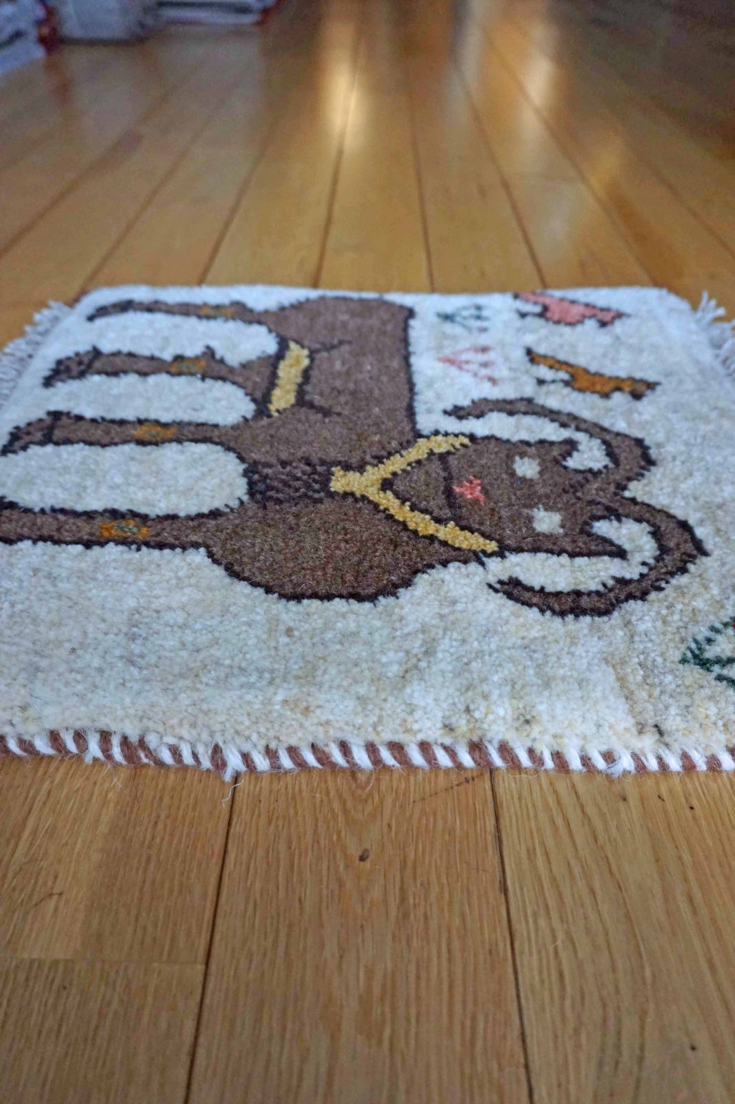 ダイニングチェアやベンチにちょうどいいギャッベ座布団サイズ。夏もサラッとして暑くなく、一年中敷いていただけます。車のシートやキャンプのチェアにもおすすめ。