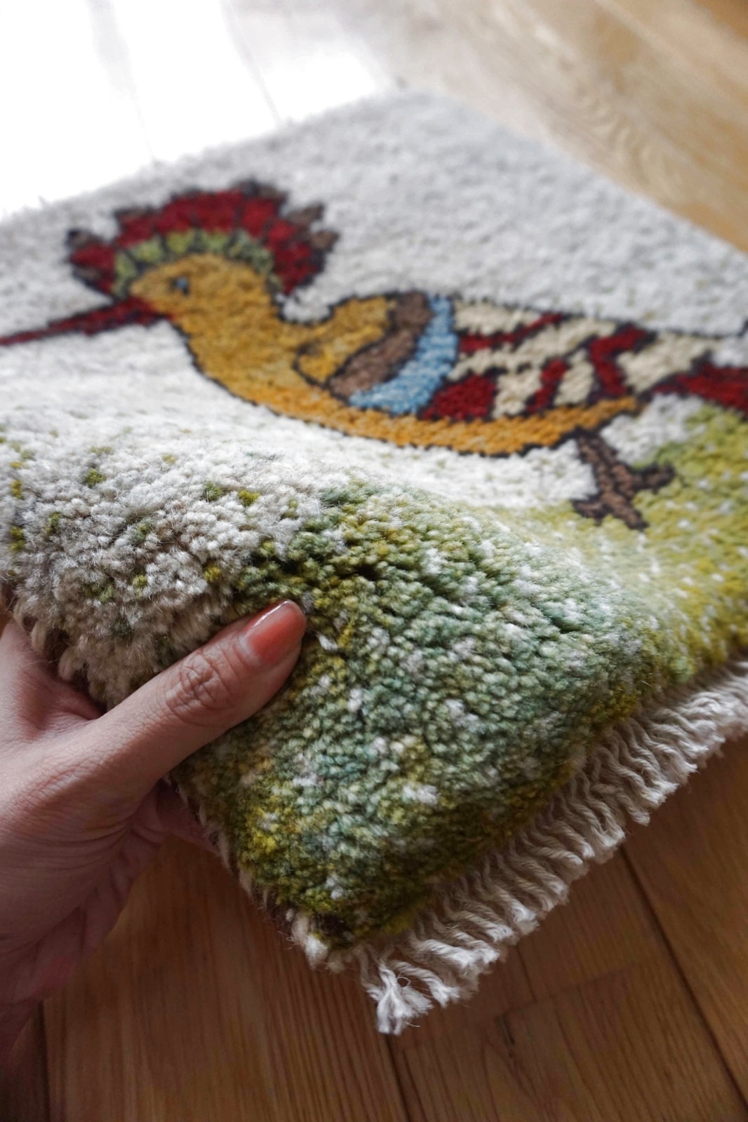 ダイニングチェアやベンチにちょうどいいギャッベ座布団サイズ。夏もサラッとして暑くなく、一年中敷いていただけます。車のシートやキャンプのチェアにもおすすめ。
