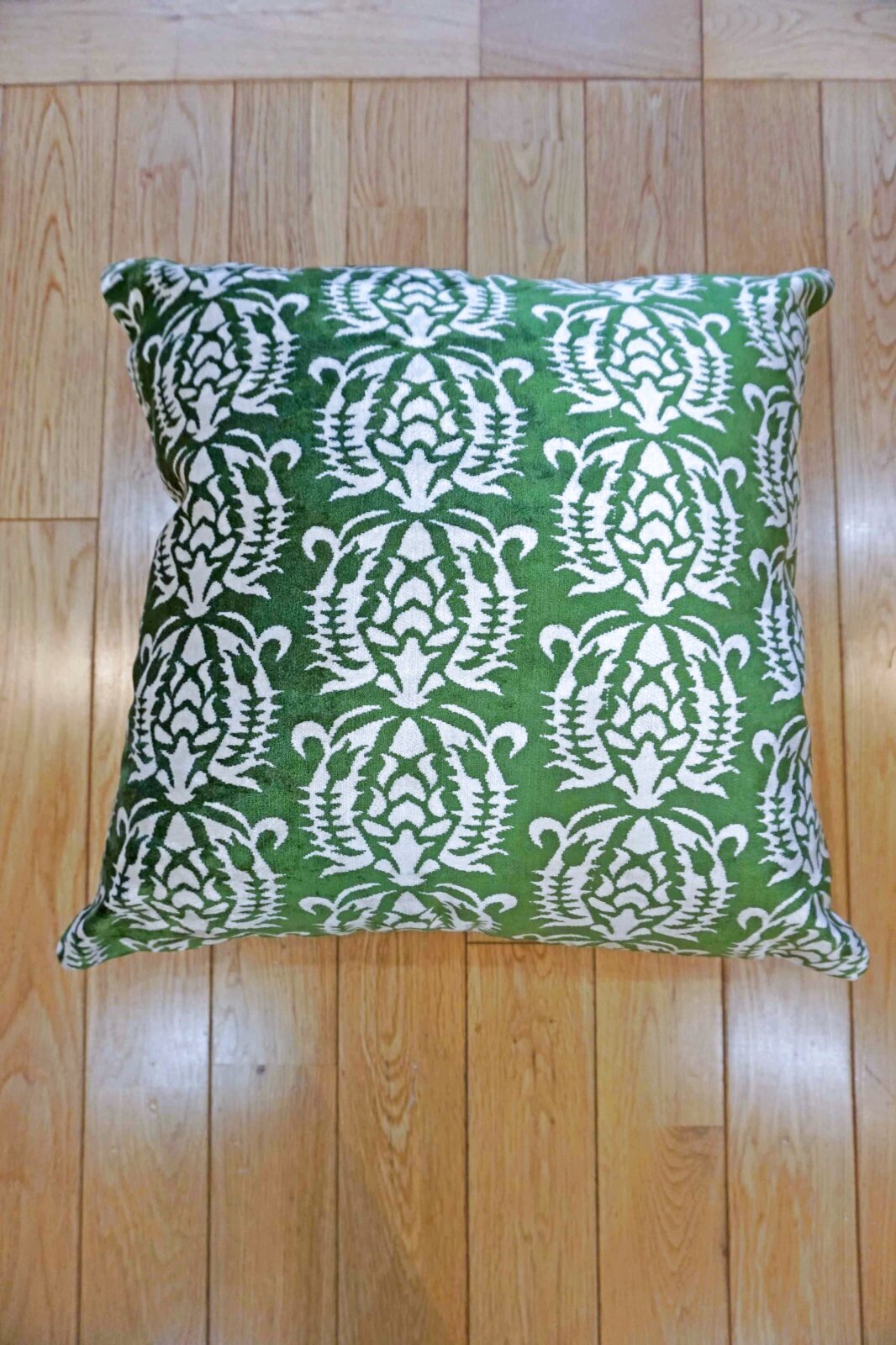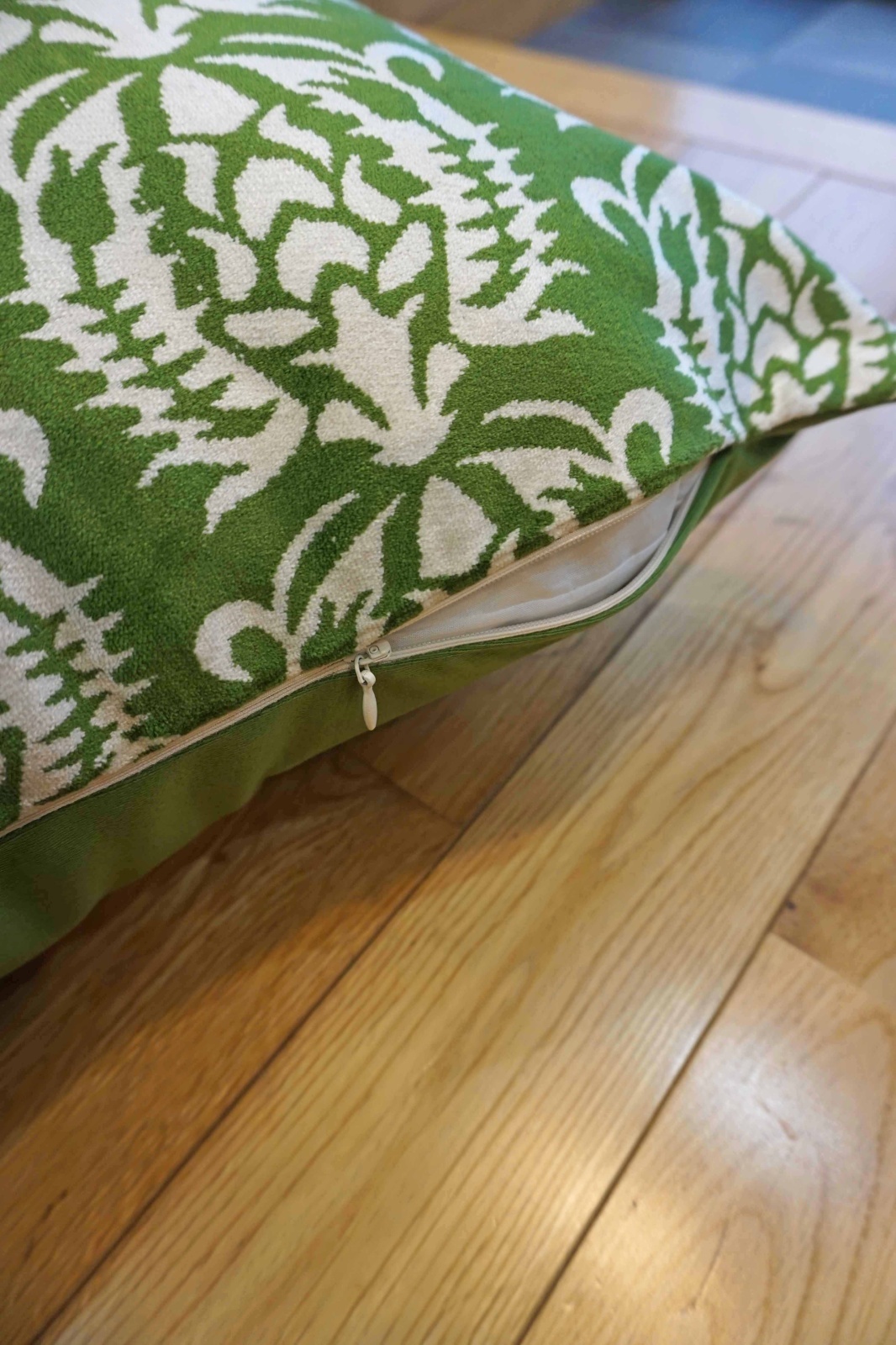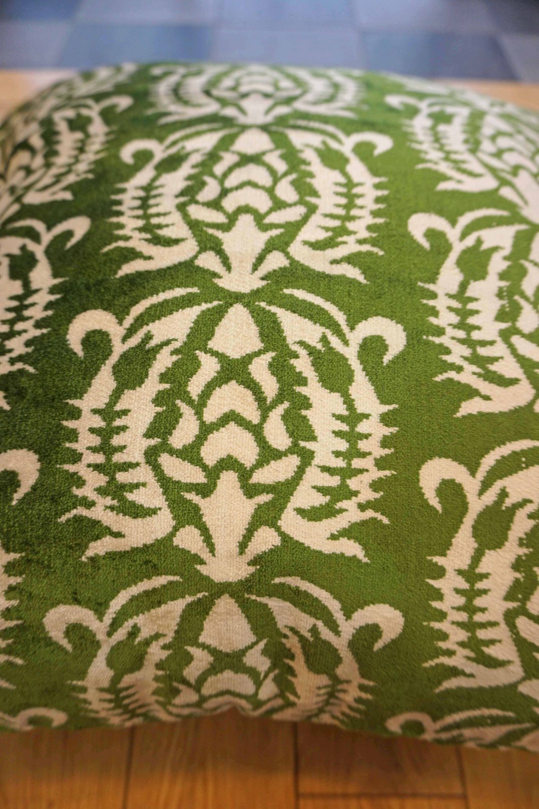 伝統の模様を使ったクッションカバー。表はシルクのベルベット生地。肌触りが柔らかいので、背もたれにしていただいても気持ち良くお使いいただけます。