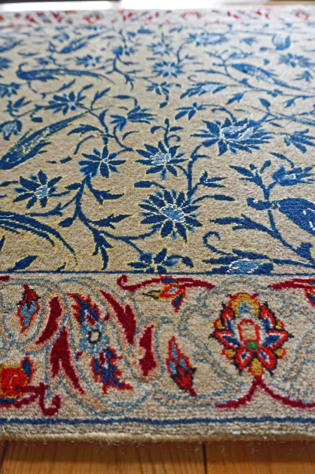イスファハンはイランの中部にある町。歴史が古く町にはモスクが多くあります。日本の京都のようなイメージの町です。美しく綺麗で丁寧な計算された模様はペルシャ絨毯の中でも一番といわれています。