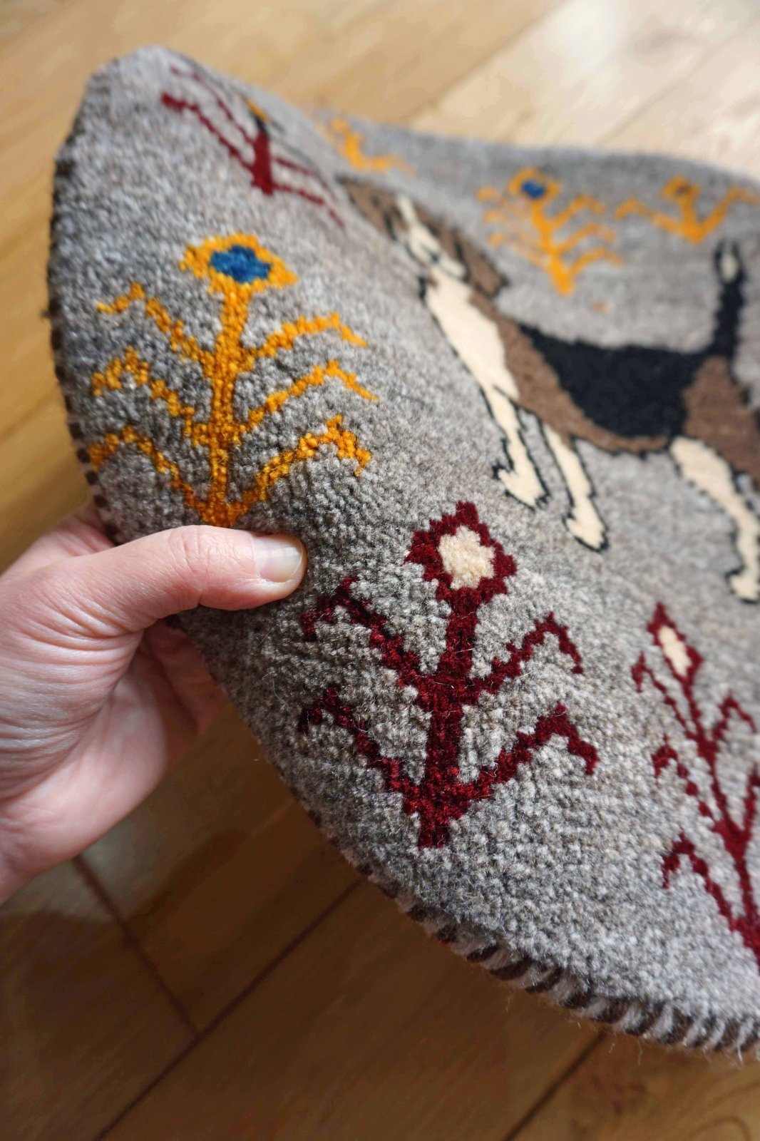 ワンランク上の上質の毛を使ったカシュクリタイプのギャッベです。肌触りがいいので食後の会話も弾んで離れたくなくなるかも♪ダイニングチェアやベンチ、車のシートやキャンプにもにおすすめです。