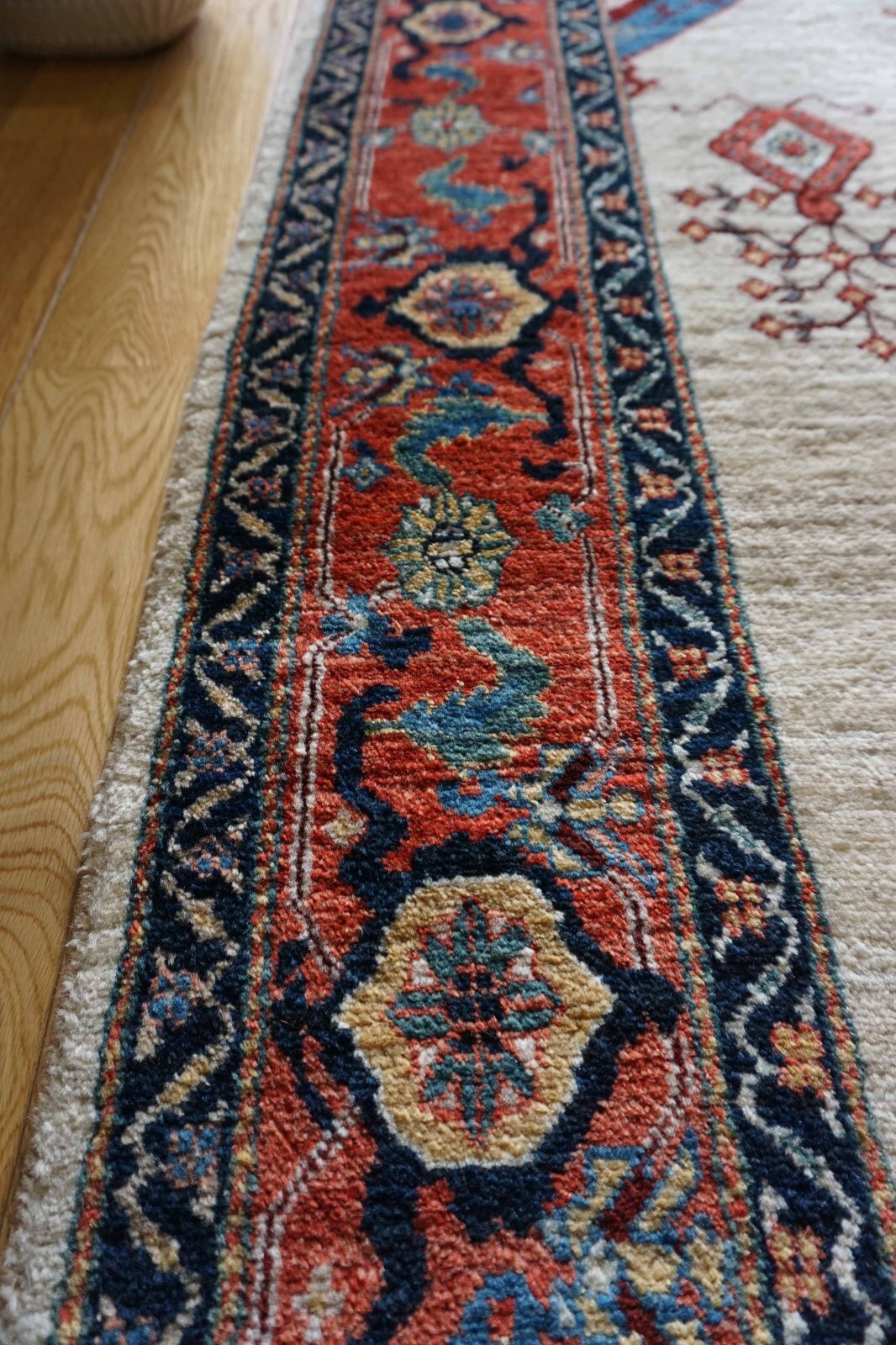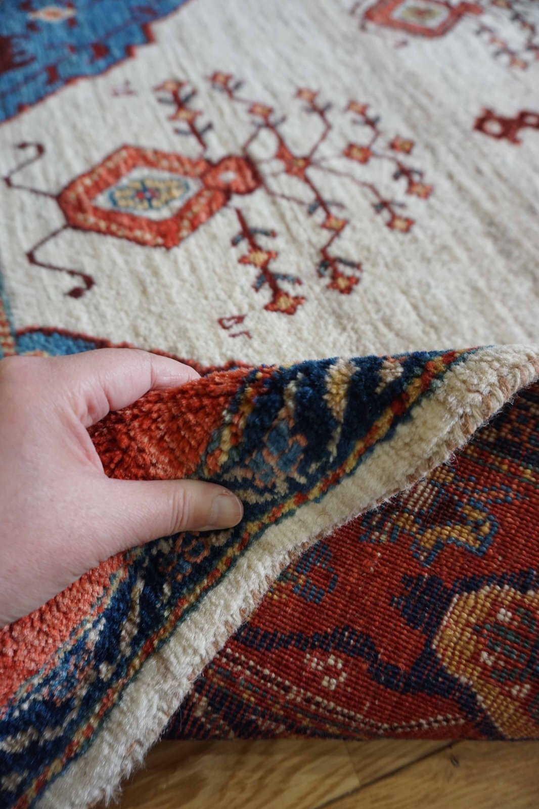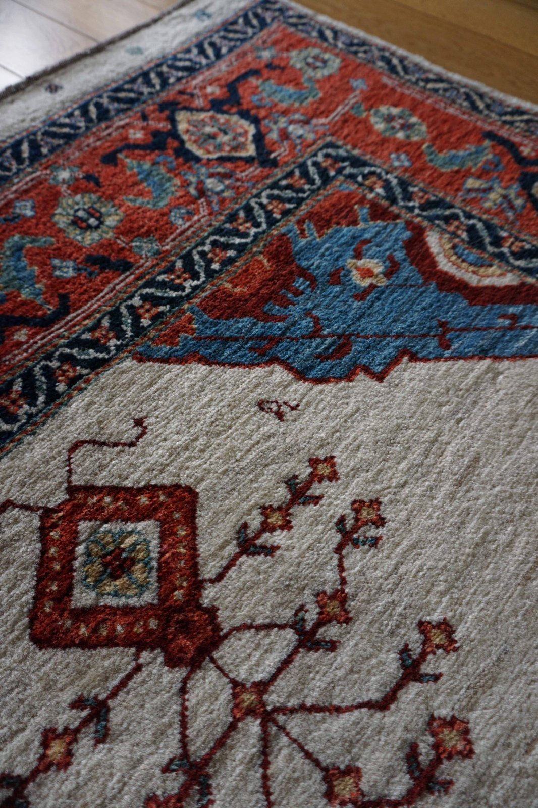 アメレは手紡ぎされたランクの高い糸を使っています。結びが細かく整った模様が魅力です。ウールの柔らかさにこだわっておりカシュクリよりも毛足が長めでフカフカしています。