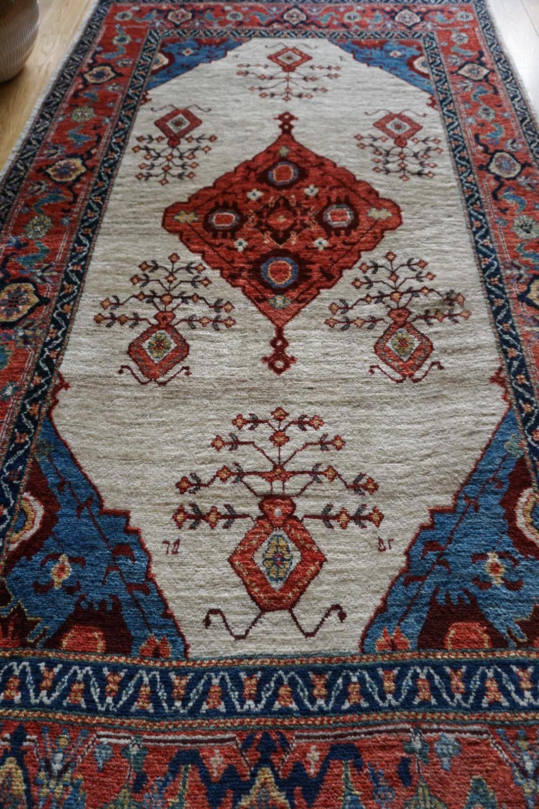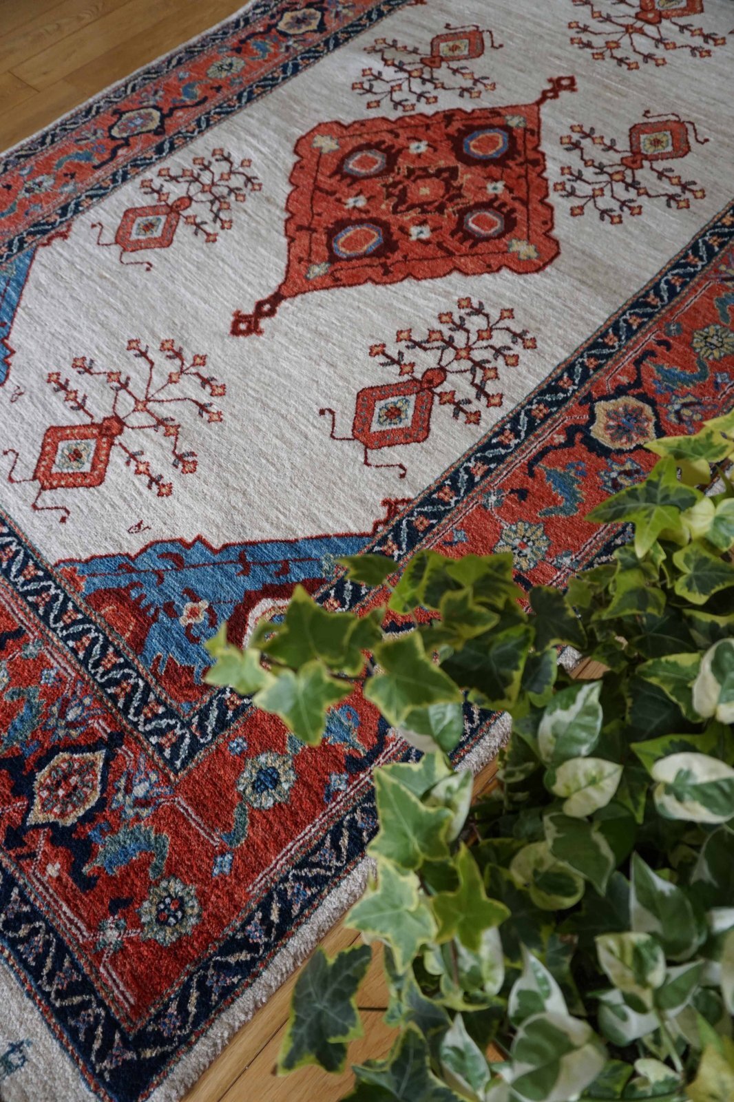 爽やかなブルーがメインのギャッベです。グラデーションの入り方がとても綺麗で全体的な生命の木の模様が落ち着いていて上品です。
