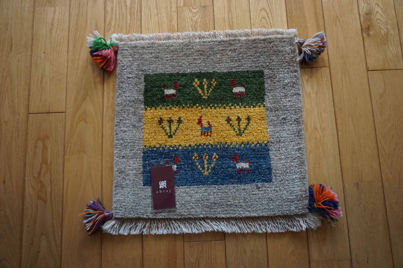 ギャッベ座布団はダイニングチェアやベンチ、車のシートにおすすめ。最近はキャンプに使われる方も。ミニ玄関マットはマンションの玄関や洗面台の前、トイレに使われる方も。どちらも毛足が長めでフカフカ。肌触りがよく気持ちいいです♪