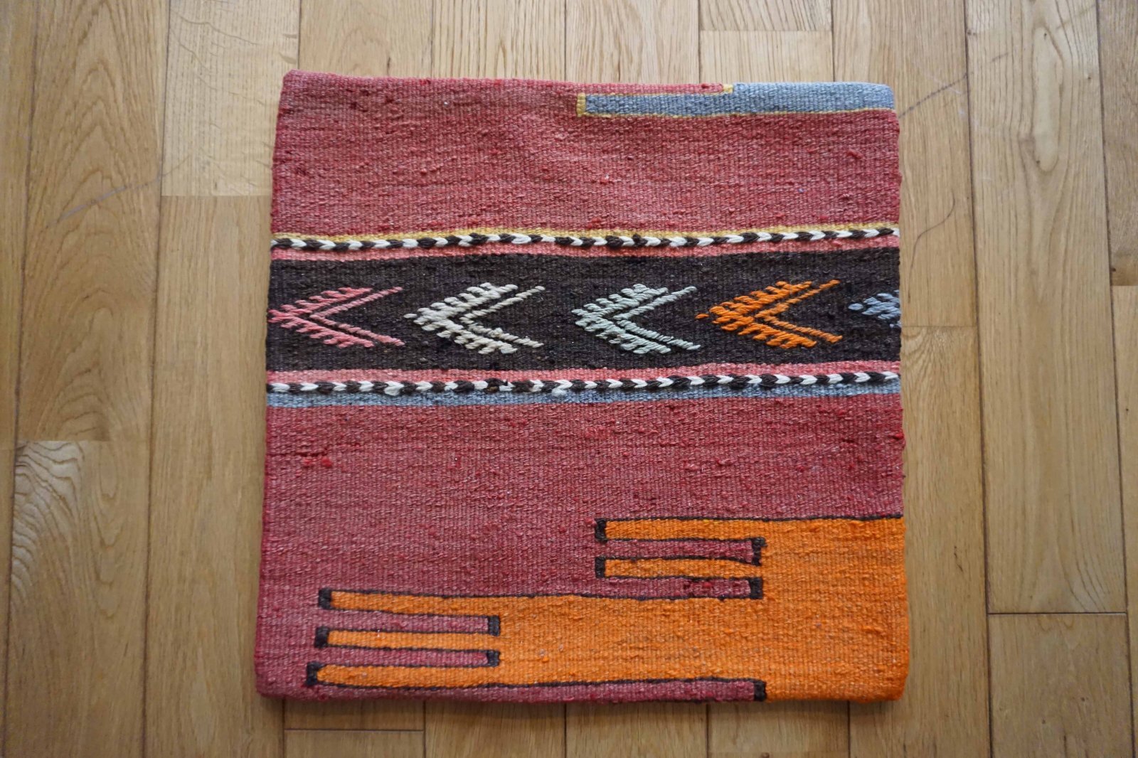 40〜100年前に手織りされたオールドキリムを使ったクッションカバー。時間と共に変化した染め色には深みがあります。