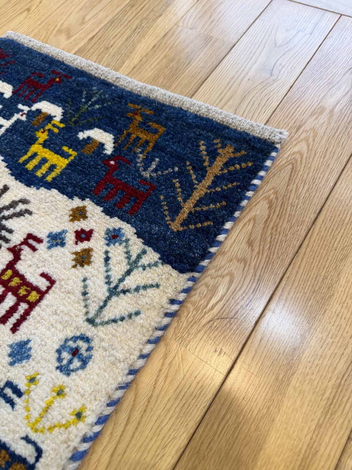 カシュクリは冬を越した羊の毛を使い手紡ぎされたランクの高い糸を使っています。肌触りも柔らかく光沢があるのが特徴です。結びが細かく整った模様が魅力です。毛足は短い目でスッキリした印象。