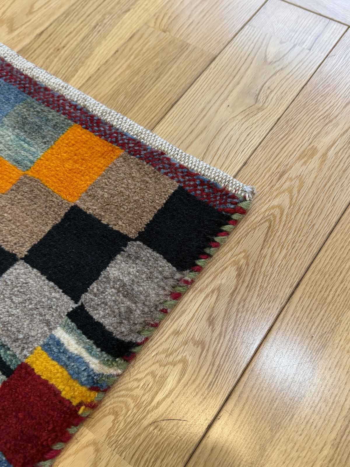 カシュクリは冬を越した羊の毛を使い手紡ぎされたランクの高い糸を使っています。肌触りも柔らかく光沢があるのが特徴です。結びが細かく整った模様が魅力です。毛足は短い目でスッキリした印象。