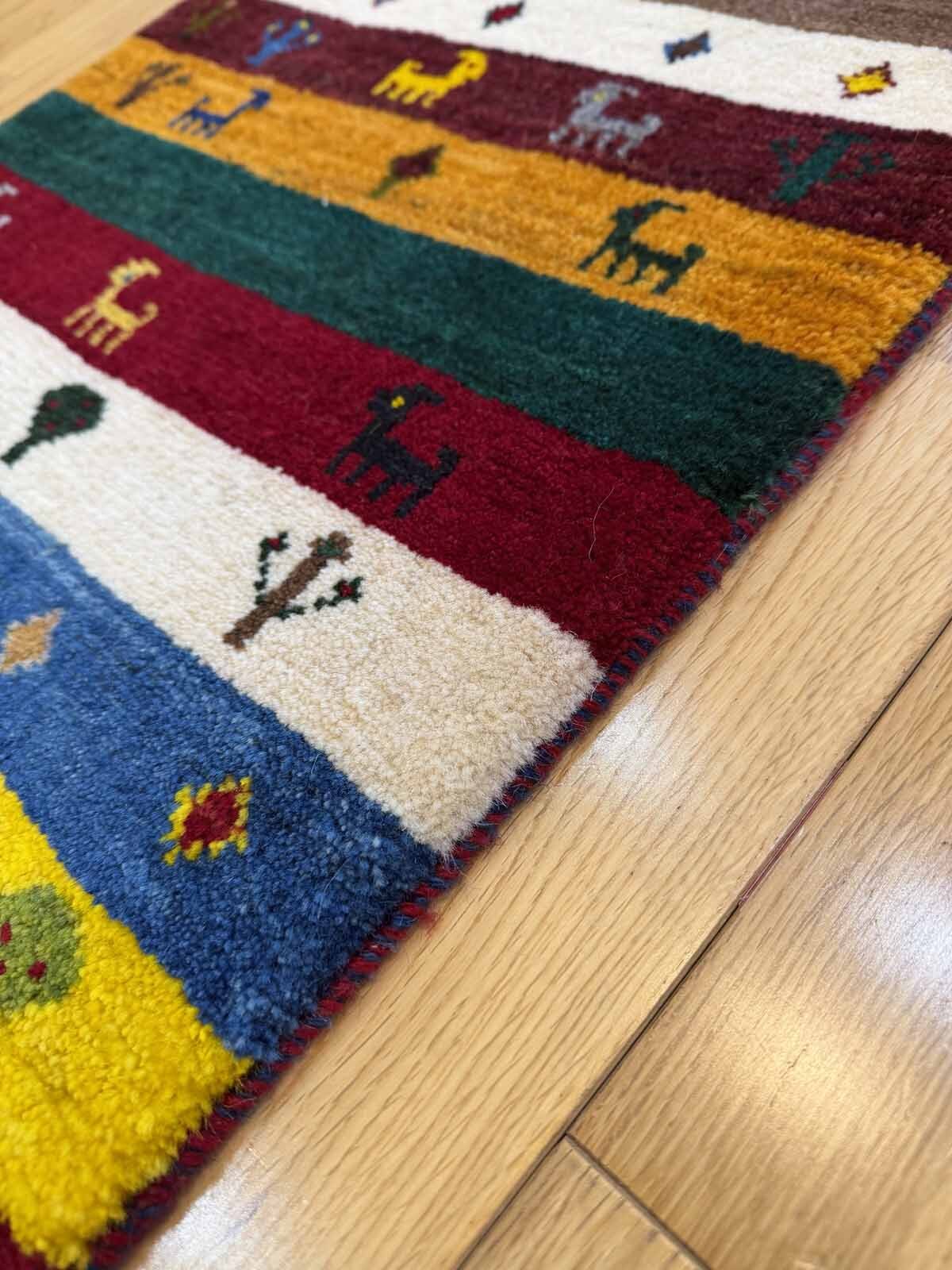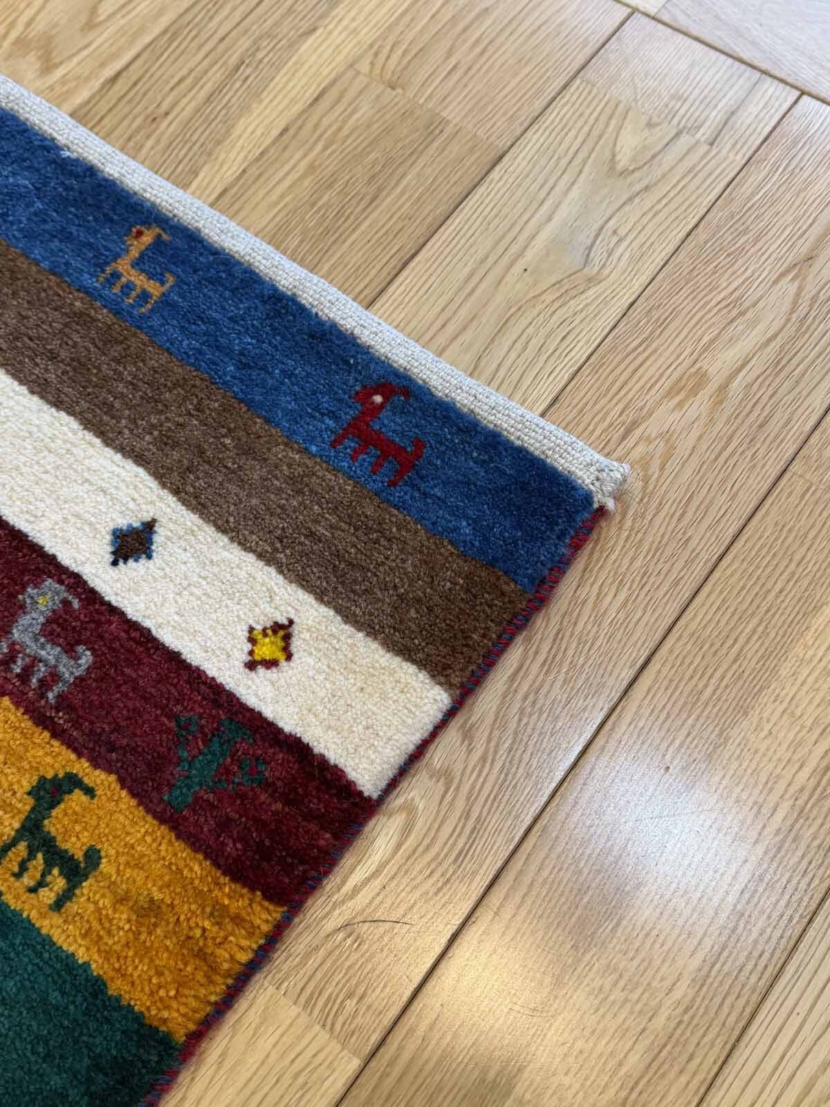カシュクリは冬を越した羊の毛を使い手紡ぎされたランクの高い糸を使っています。肌触りも柔らかく光沢があるのが特徴です。結びが細かく整った模様が魅力です。毛足は短い目でスッキリした印象。