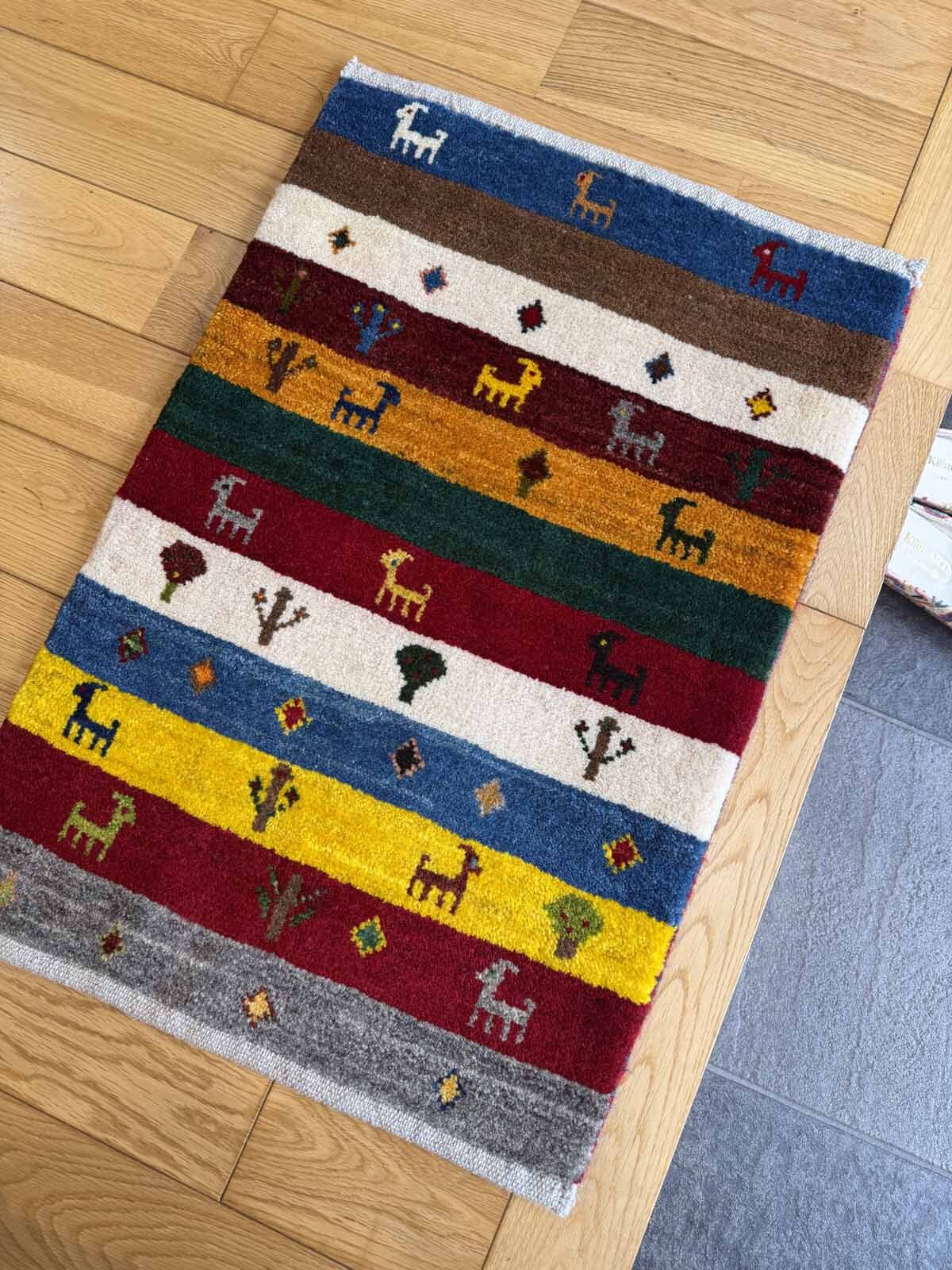 小さめの玄関マットサイズです。冬は温かく夏はサラッとして気持ちよく、一年中お使いいただけます。