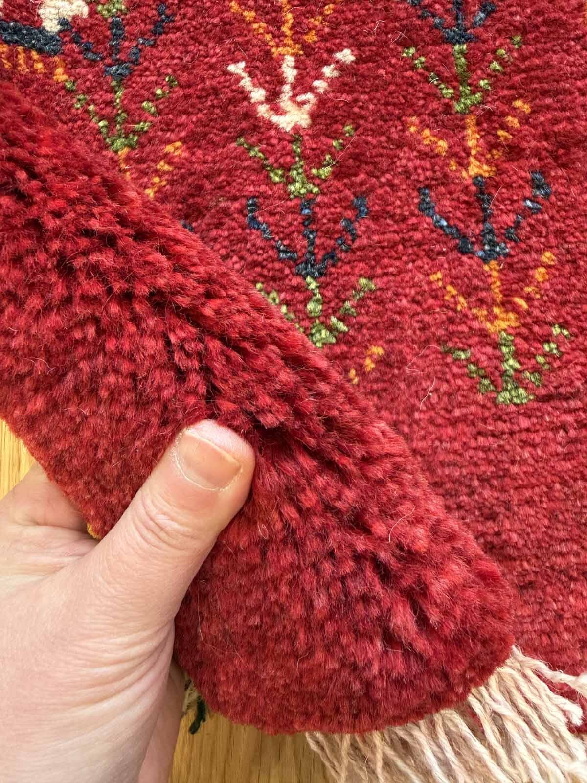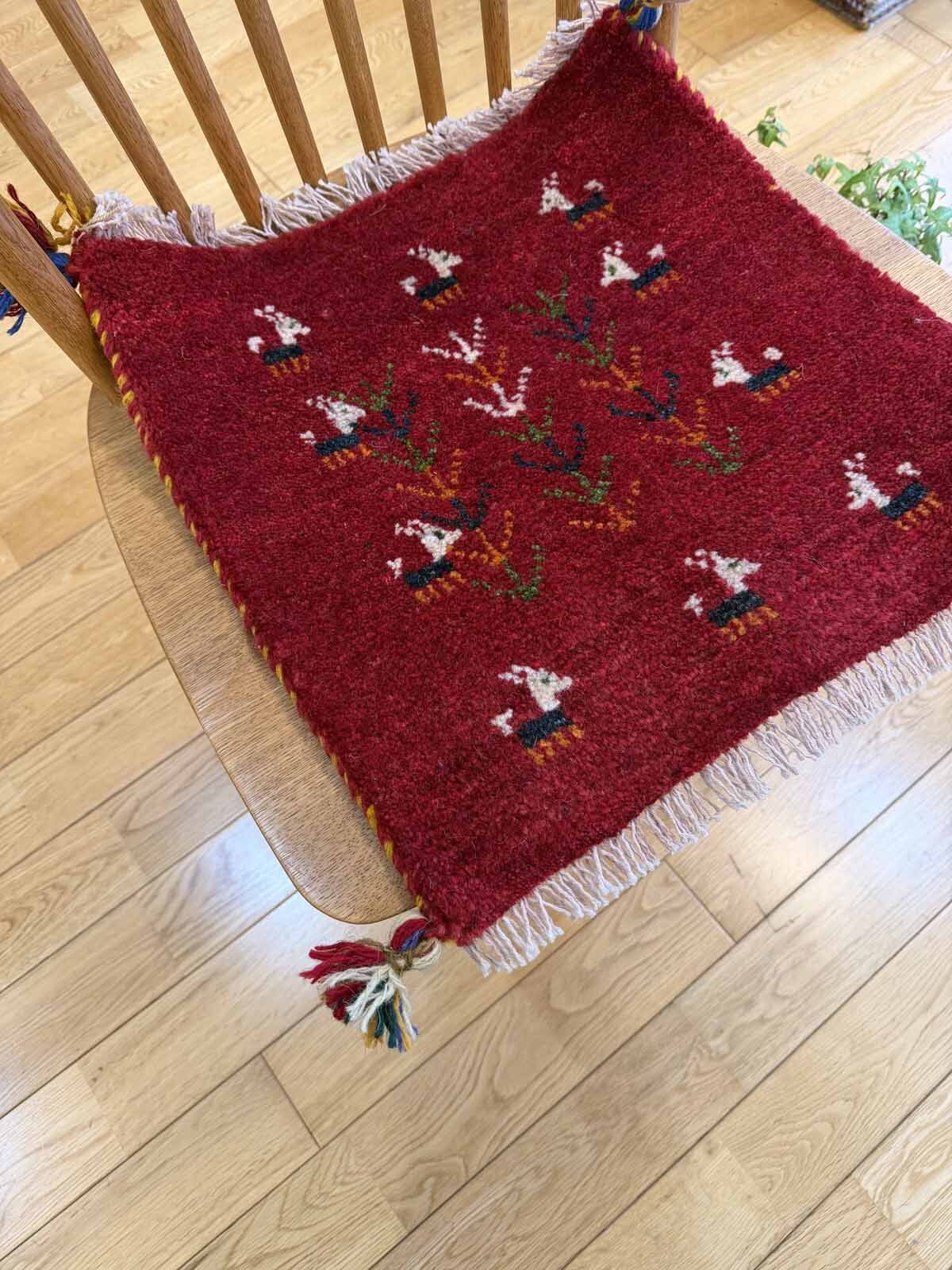 ダイニングチェアやベンチにちょうどいいギャッベ座布団サイズ。夏もサラッとして暑くなく、一年中敷いていただけます。車のシートやキャンプのチェアにもおすすめ。