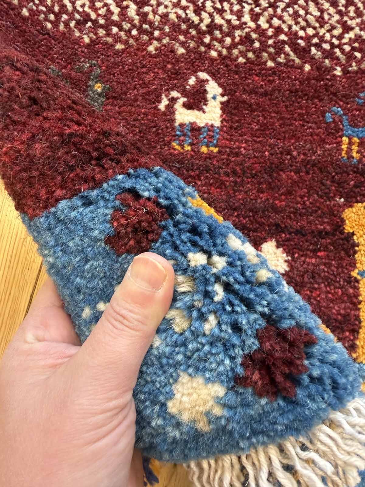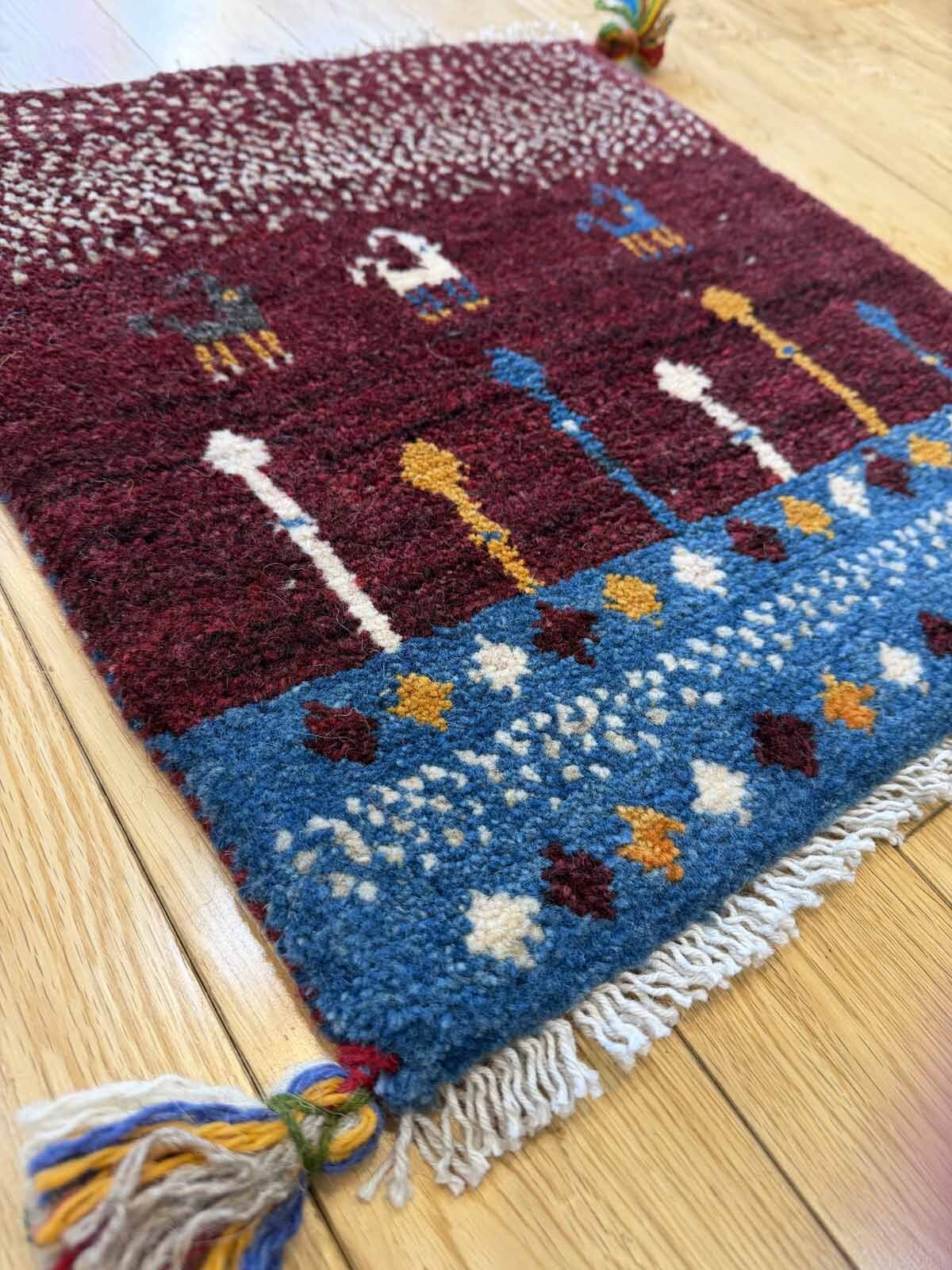 ダイニングチェアやベンチにちょうどいいギャッベ座布団サイズ。夏もサラッとして暑くなく、一年中敷いていただけます。車のシートやキャンプのチェアにもおすすめ。