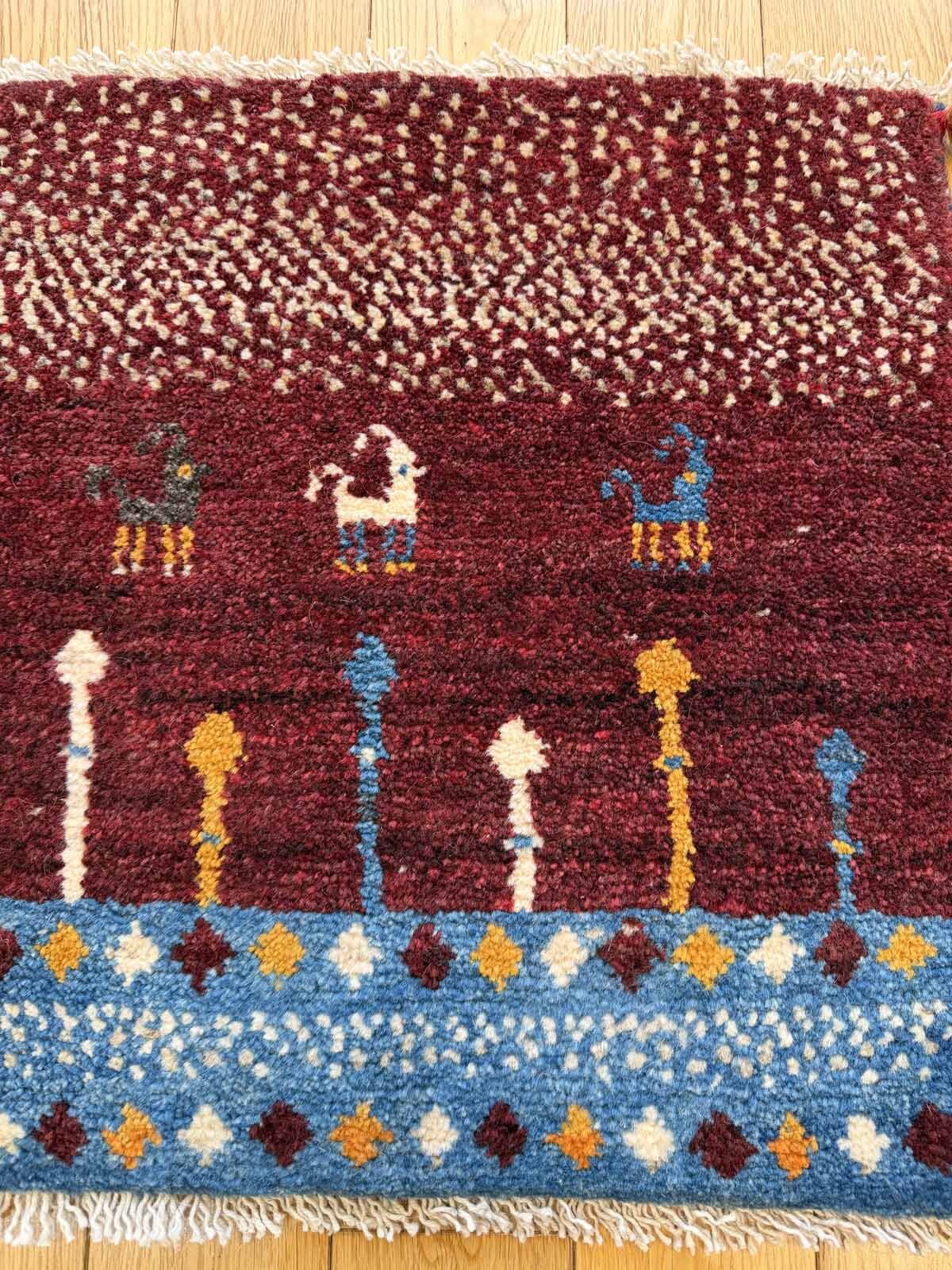 ギャッベ/座布団サイズ45×43cm(フリンジ・ボンボリあり) [gz_1109]