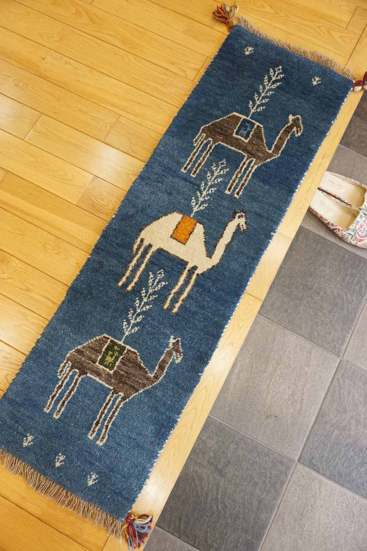ギャッベは毛足が長くフンワリ感があります。結びが大きいので模様も大きく手作りの温かさがあります。