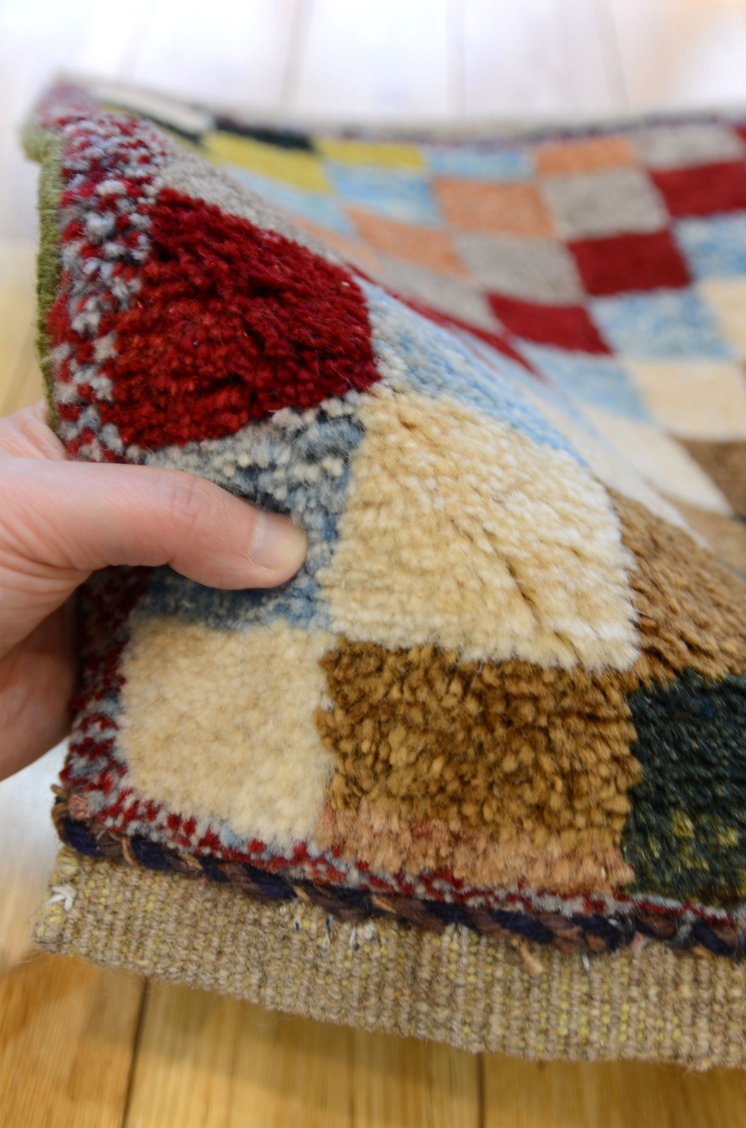 ワンランク上の上質の毛を使ったカシュクリタイプのギャッベです。肌触りがいいので食後の会話も弾んで離れたくなくなるかも♪ダイニングチェアやベンチ、車のシートやキャンプにもにおすすめです。