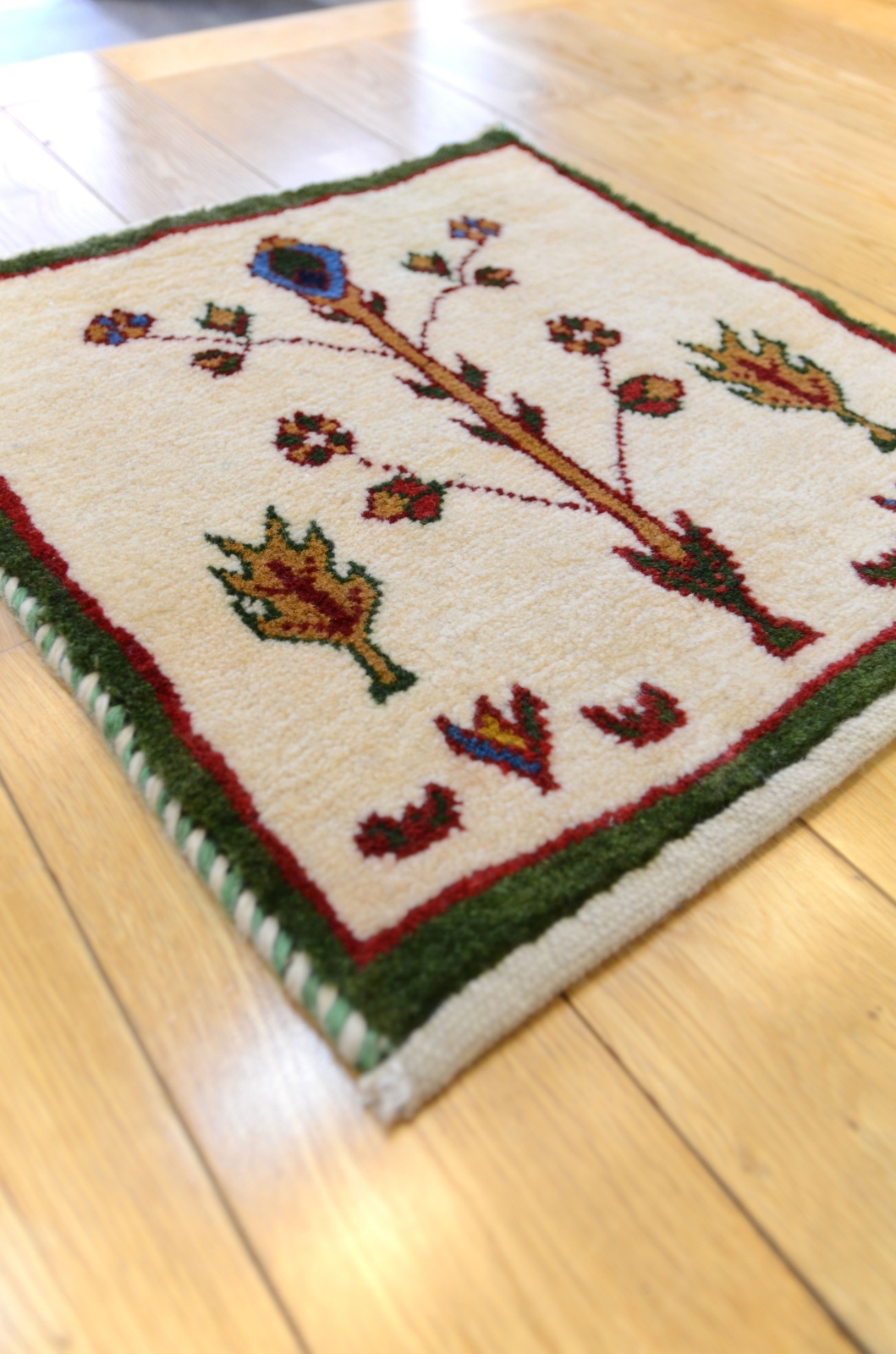 ワンランク上の上質の毛を使ったカシュクリタイプのギャッベです。肌触りがいいので食後の会話も弾んで離れたくなくなるかも♪ダイニングチェアやベンチ、車のシートやキャンプにもにおすすめです。