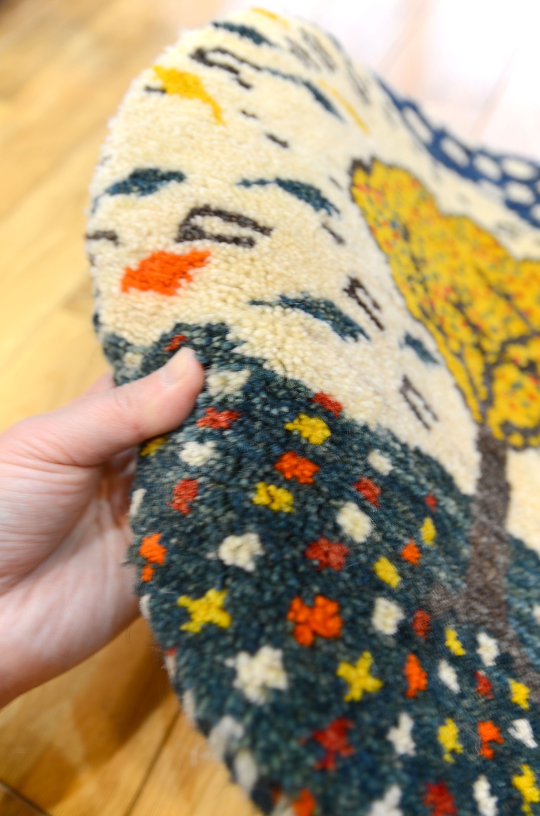 ワンランク上の上質の毛を使ったカシュクリタイプのギャッベです。肌触りがいいので食後の会話も弾んで離れたくなくなるかも♪ダイニングチェアやベンチ、車のシートやキャンプにもにおすすめです。