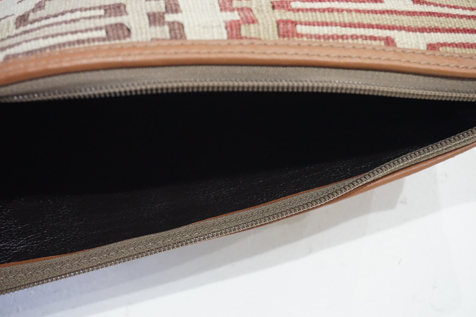 裏と表のキリムの模様が違うので、その日の気分に合わせてお持ちいただけます。シンプルな柄が楽しめるデザイン。