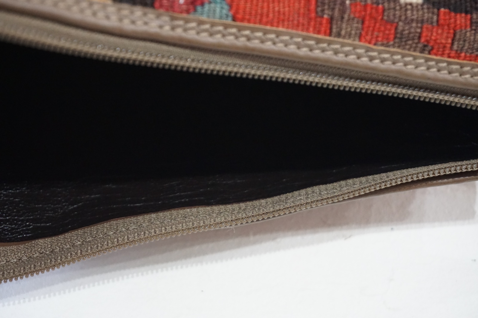 裏と表のキリムの模様が違うので、その日の気分に合わせてお持ちいただけます。シンプルな柄が楽しめるデザイン。