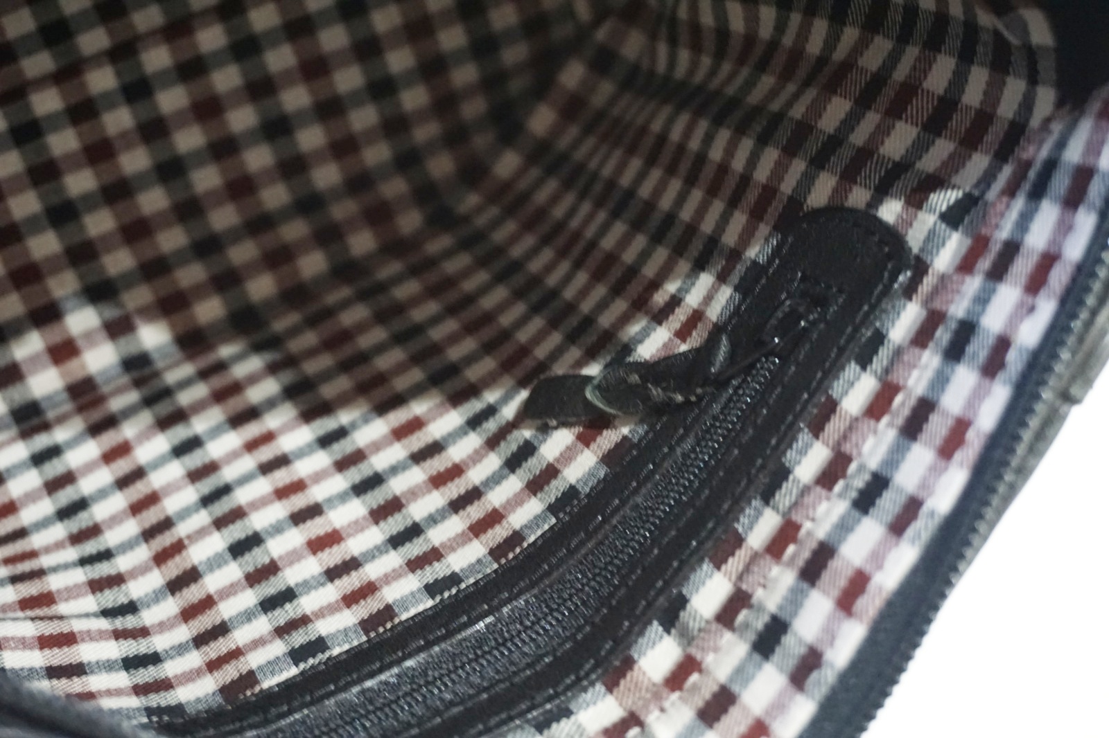肩に掛けてお使いいただけます。外にチャックがついているのでバッグの中が見えなくて安心。