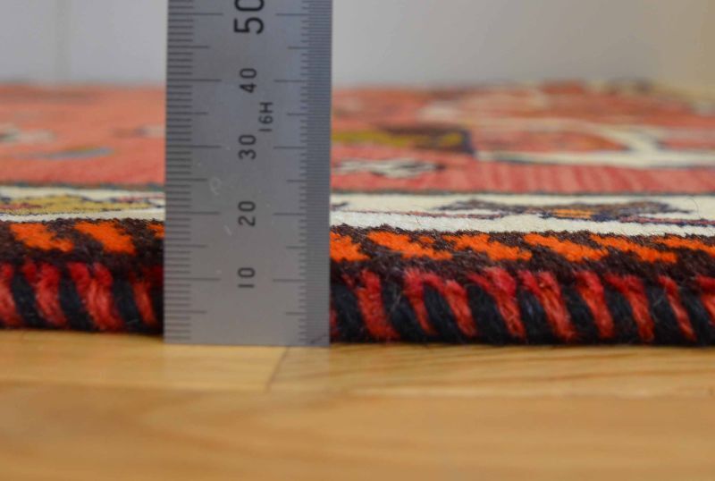 作られてから時間が経っているので新しいギャッベに比べ肌触りが柔らかいのと、時間が経つことで出る深みのある色に特徴があります。
