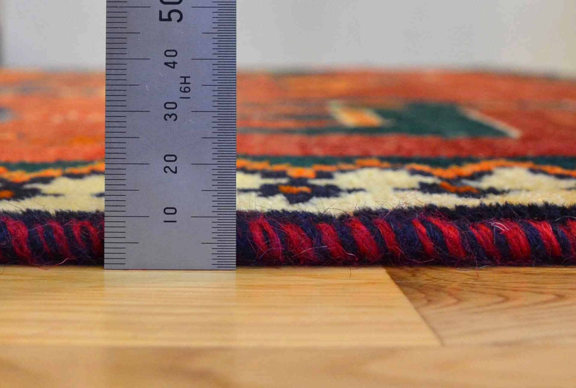 作られてから時間が経っているので新しいギャッベに比べ肌触りが柔らかいのと、時間が経つことで出る深みのある色に特徴があります。