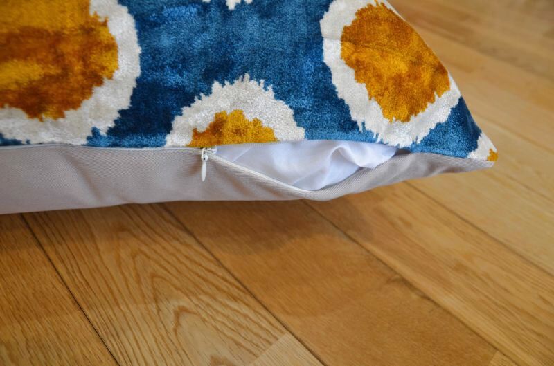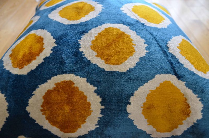 表はシルクのベルベット生地。肌触りが柔らかいので、背もたれにしていただいても気持ち良くお使いいただけます。