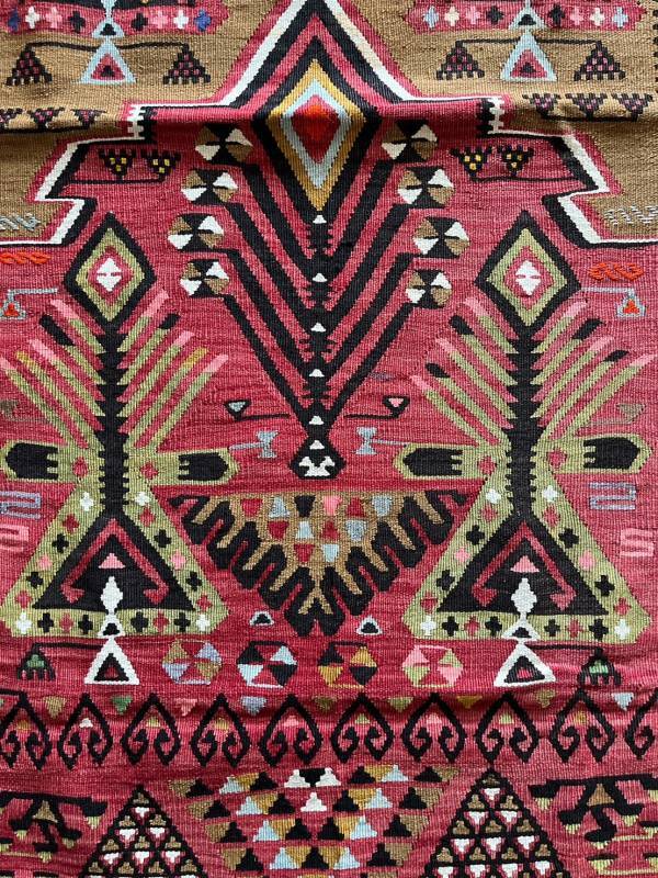オールドキリムとは、今から40年〜100年前に織られたキリムの事をいいます。新しいキリムに比べ、色に深みがあり質感も柔らかいのが特徴です。今と違い各家庭で織られていたので、デザインもオリジナリティーにあふれています。料理にも家庭の味があるように、キリムにも家庭の味があるんです♪