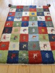 ギャッベは毛足が長くフンワリ感があります。結びが大きいので模様も大きく手作りの温かさがあります。