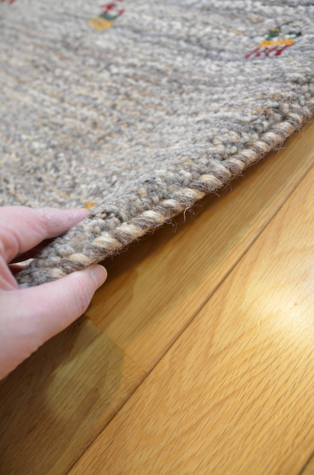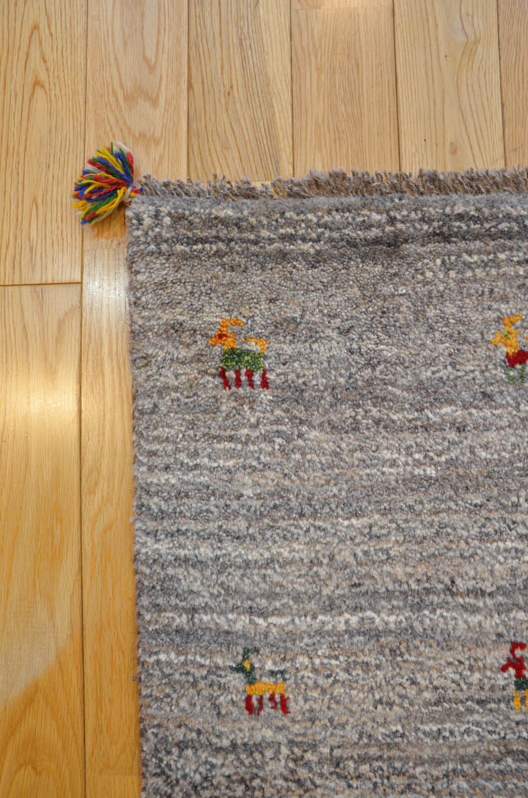 ギャッベは毛足が長くフンワリ感があります。結びが大きいので模様も大きく手作りの温かさがあります。