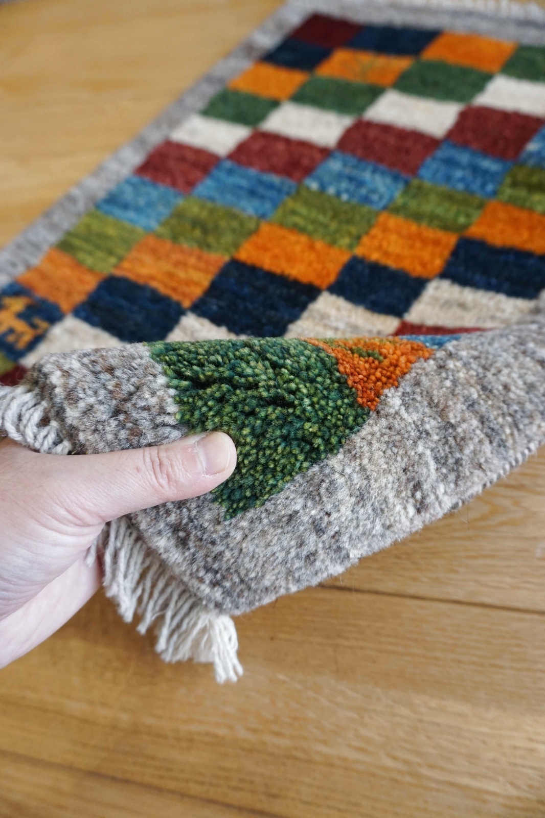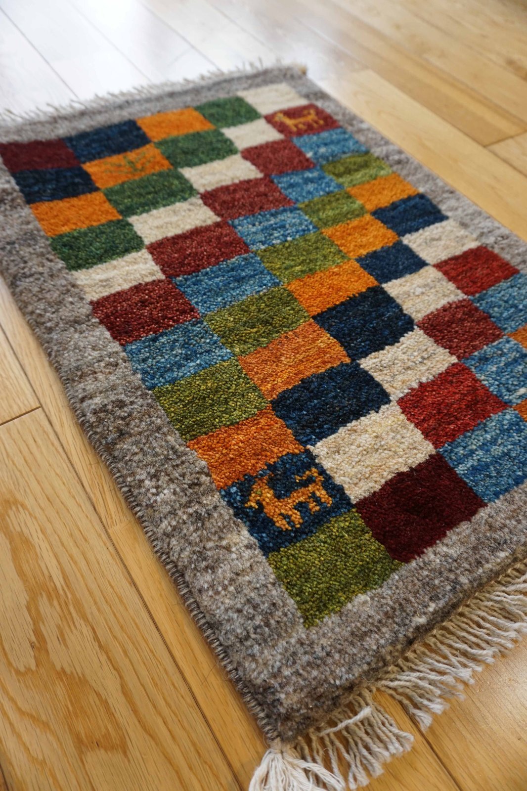 玄関や勝手口、お部屋の入口、鏡の前や家具の前などインテリアとしてお使いいただくのもおすすめです。ギャッベ上級者さんはタペストリーにしたりトイレマットとして使われることも!