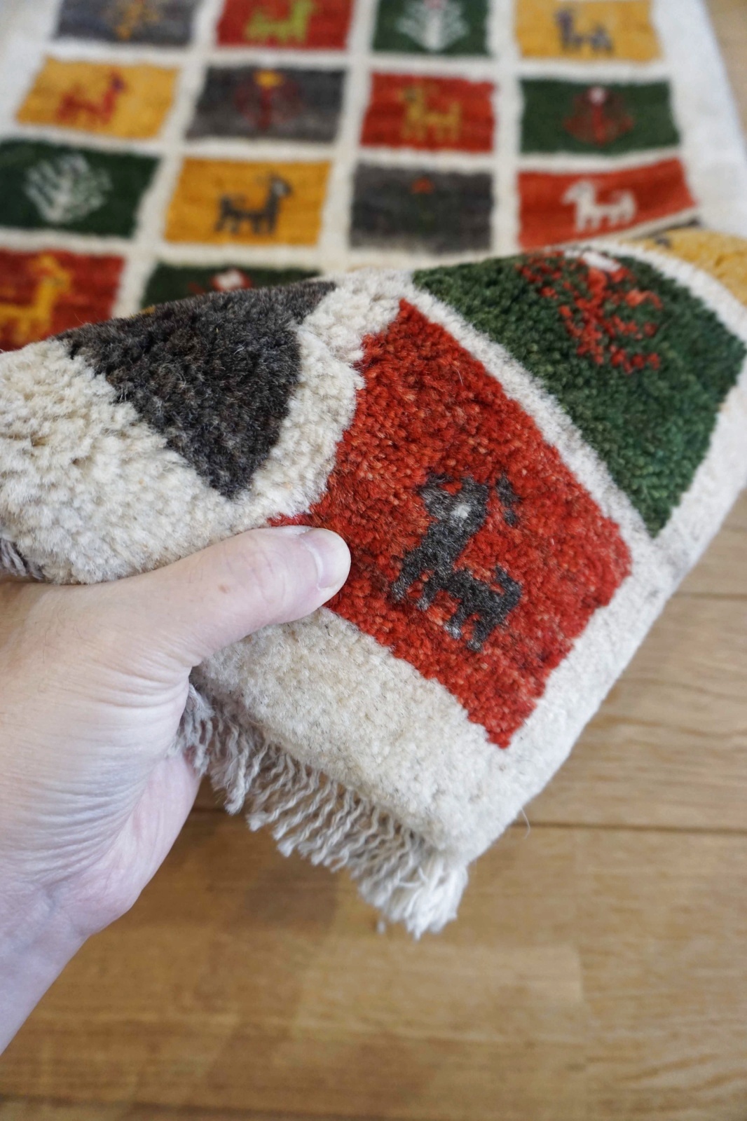 玄関や勝手口、お部屋の入口、鏡の前や家具の前などインテリアとしてお使いいただくのもおすすめです。ギャッベ上級者さんはタペストリーにしたりトイレマットとして使われることも!