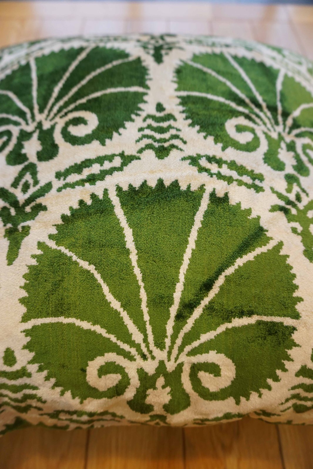 表はシルクのベルベット生地。肌触りが柔らかいので、背もたれにしていただいても気持ち良くお使いいただけます。