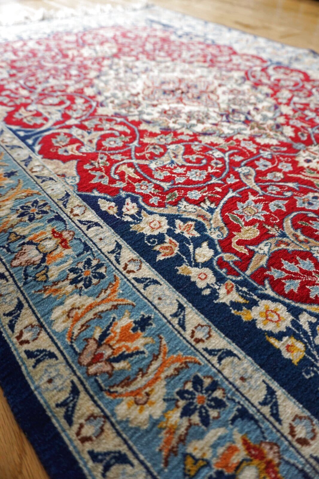 イスファハンはイランの中部にある町。歴史が古く町にはモスクが多くあります。日本の京都のようなイメージの町です。美しく綺麗で丁寧な計算された模様はペルシャ絨毯の中でも一番といわれています。