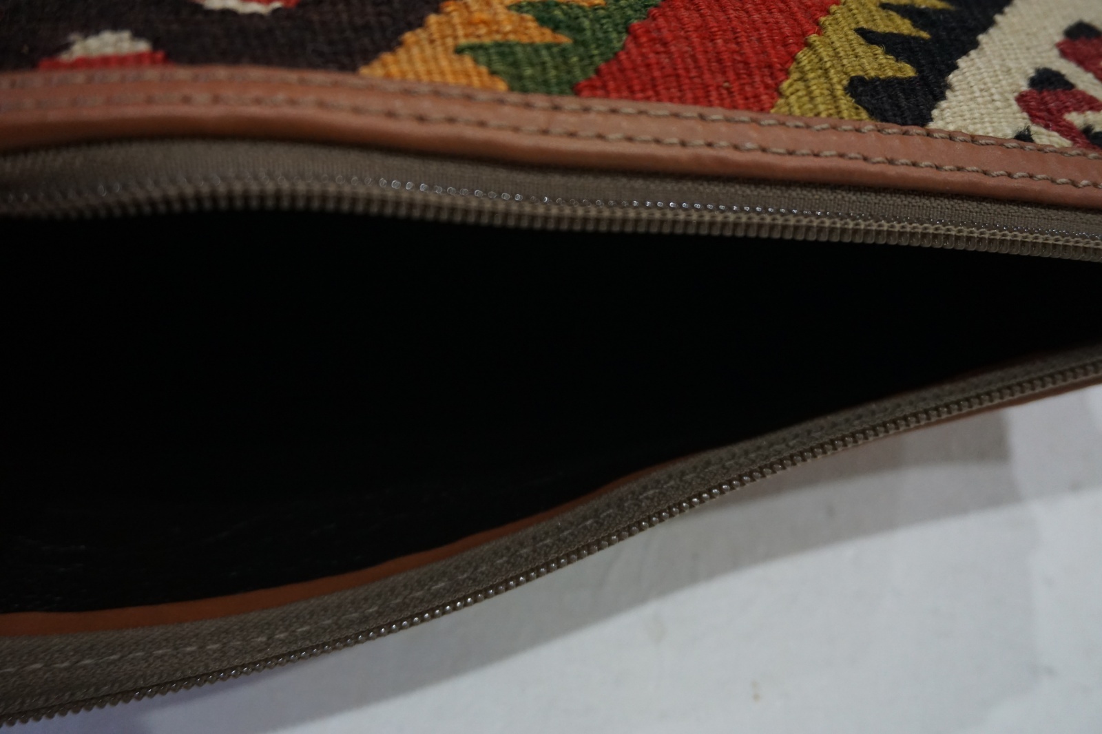 裏と表のキリムの模様が違うので、その日の気分に合わせてお持ちいただけます。シンプルな柄が楽しめるデザイン。