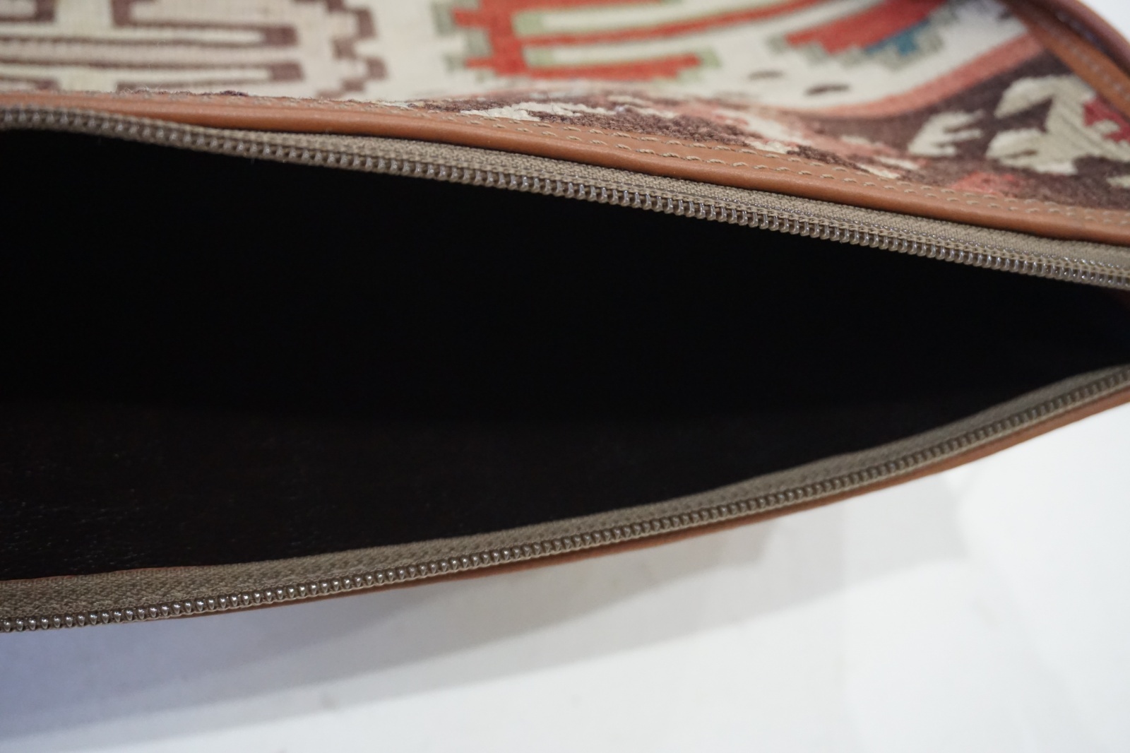 裏と表のキリムの模様が違うので、その日の気分に合わせてお持ちいただけます。シンプルな柄が楽しめるデザイン。