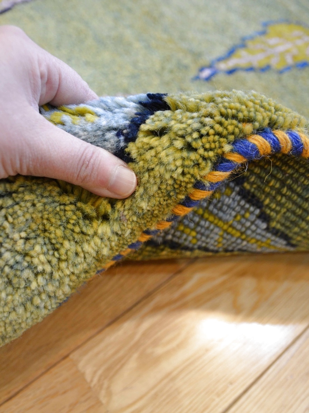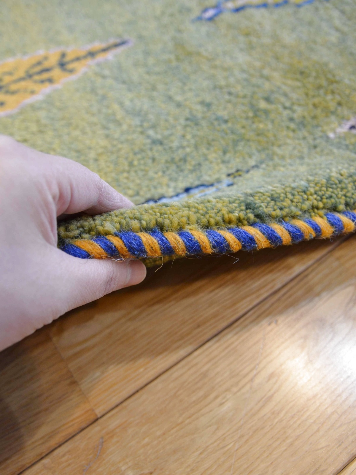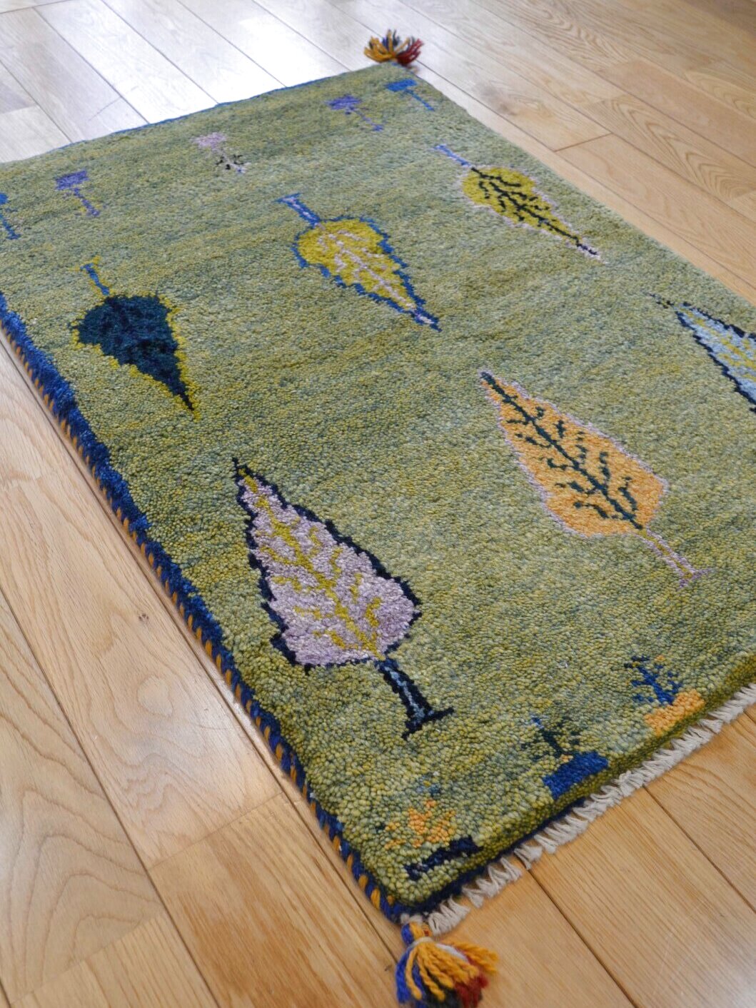 ギャッベは毛足が長くフンワリ感があります。結びが大きいので模様も大きく手作りの温かさがあります。