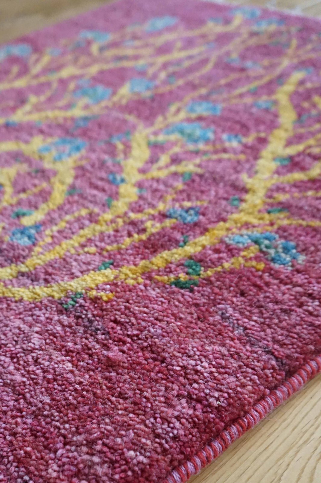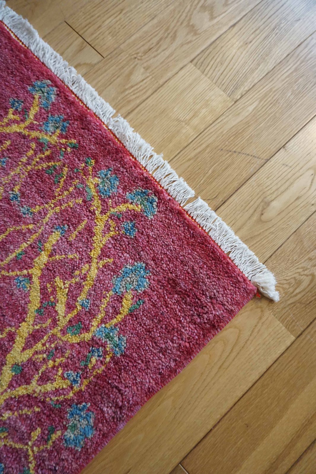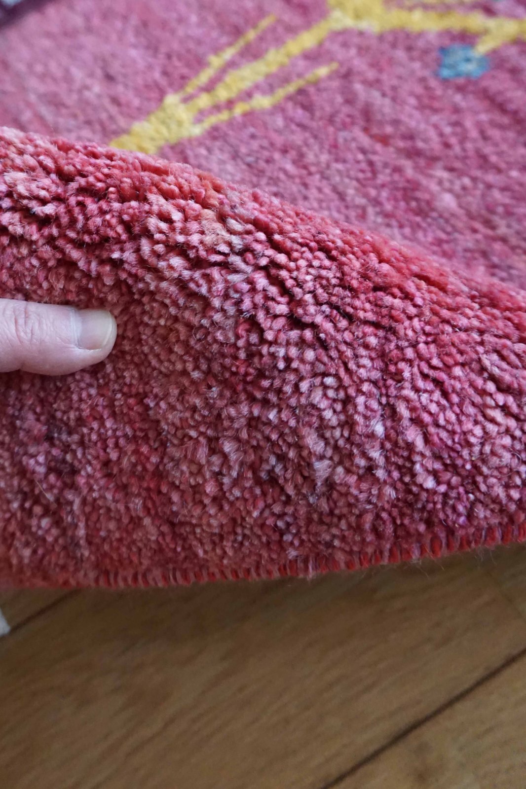 ギャッベは毛足が長くフンワリ感があります。結びが大きいので模様も大きく手作りの温かさがあります。